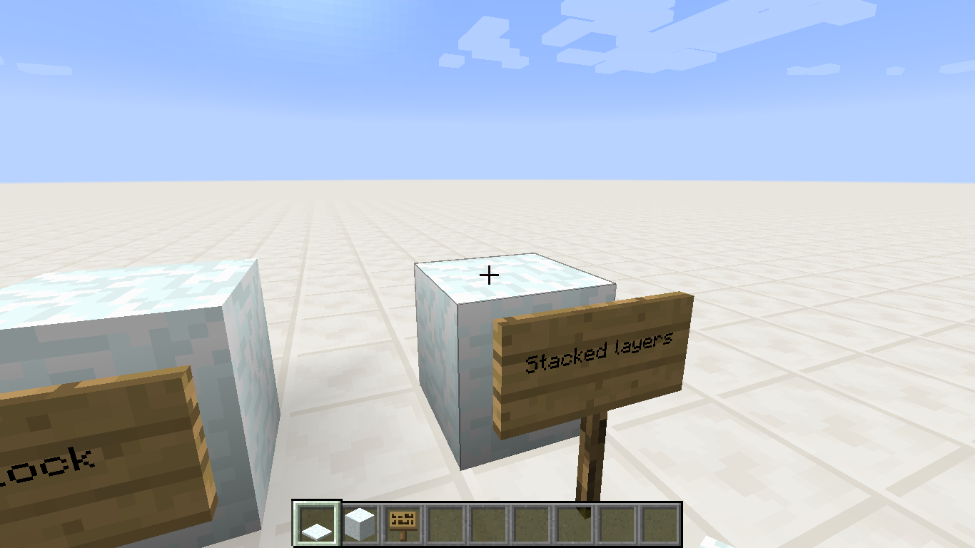 When trying to place a new snow layer, on top of another full block made of snow layers, it fails. Also, when you do it with /setblock and update the block, it disappears.