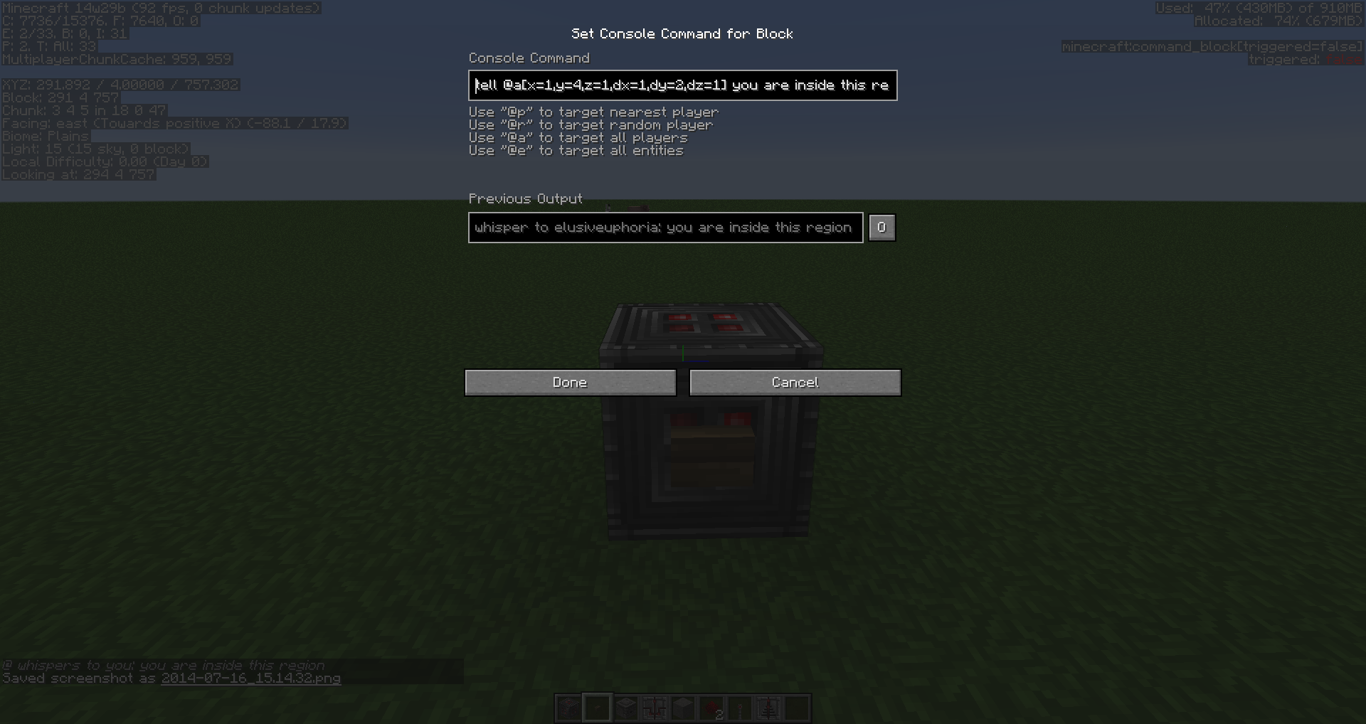 Look at the screenshots again. The command block IS outputting even thought im outside the defined region. That's the issue. The arguments are not working as intended.