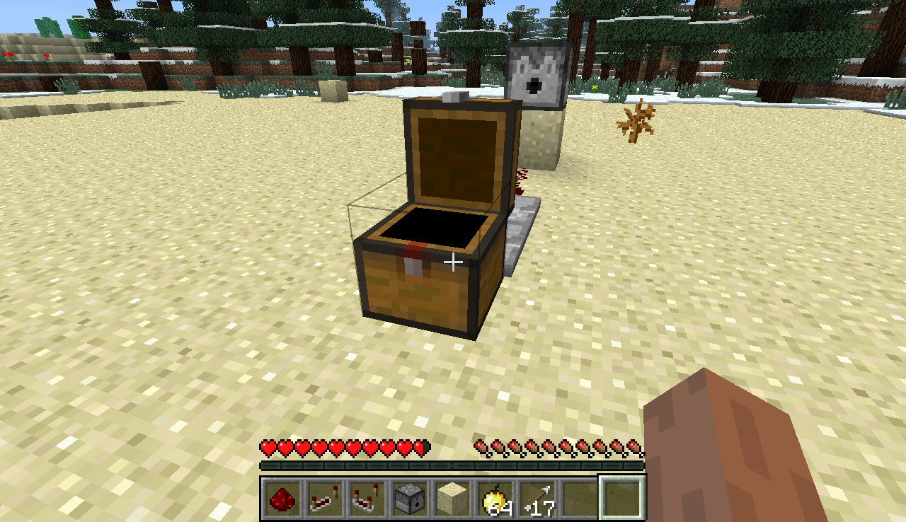 I built the setup in the attachment below, a trapped chest hooked up to a comparator -> repeater -> dispenser -> redstone dust loop. This causes an arrow to be fired every time it loops around. However, when the arrows push me back, the GUI for the chest disappears and it does not give out a signal, but visually the chest remains in the open state.