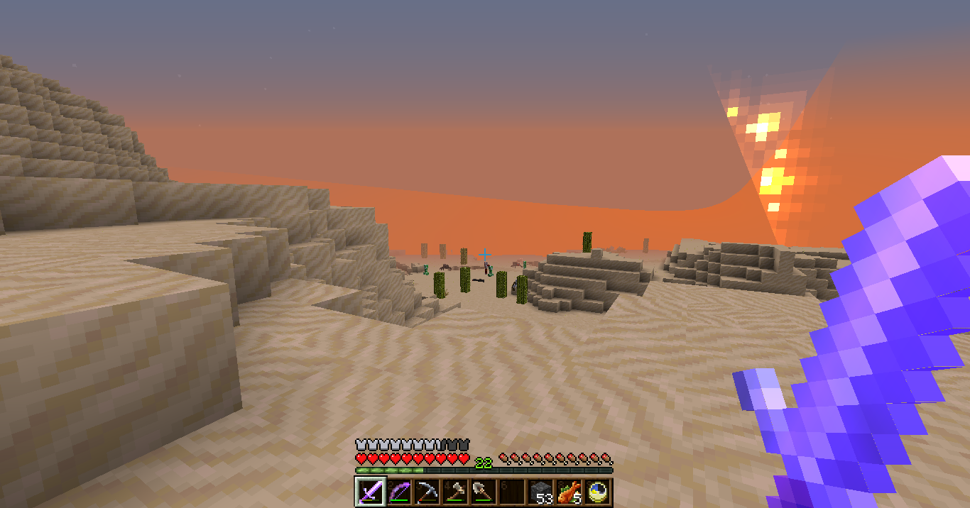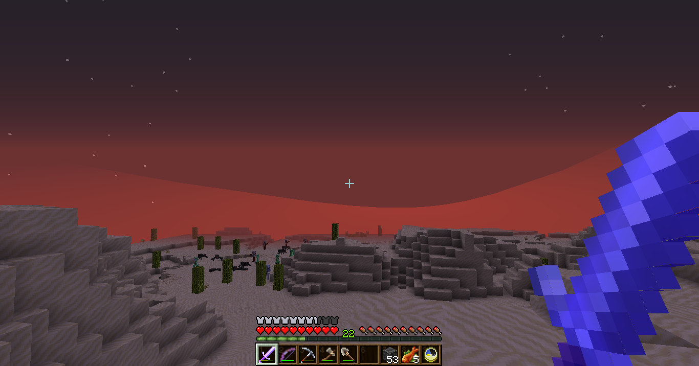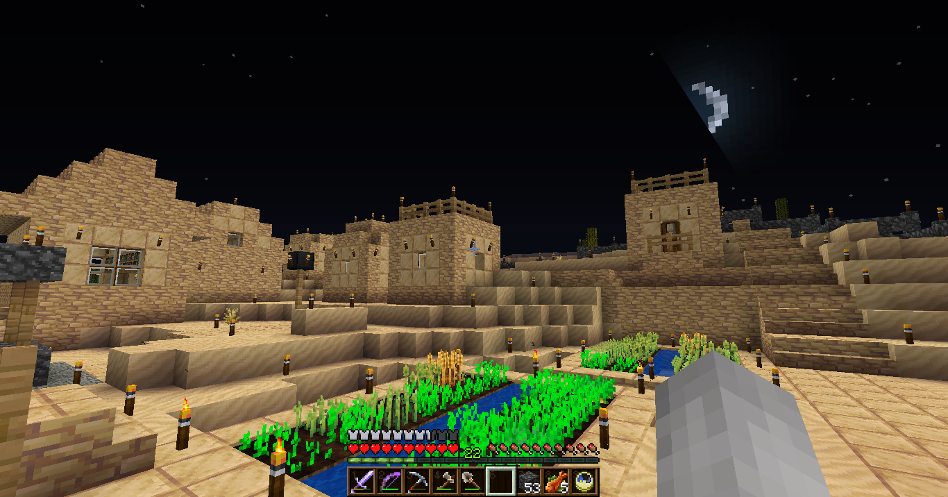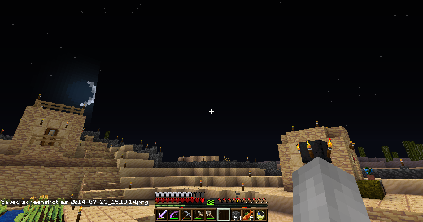 There's a shadow across the sky that blocks out the sun, moon, and some stars. It's more or less centered. If you turn so that the sun or moon are to the side of the screen, you can see the defined boundary of this shadow.