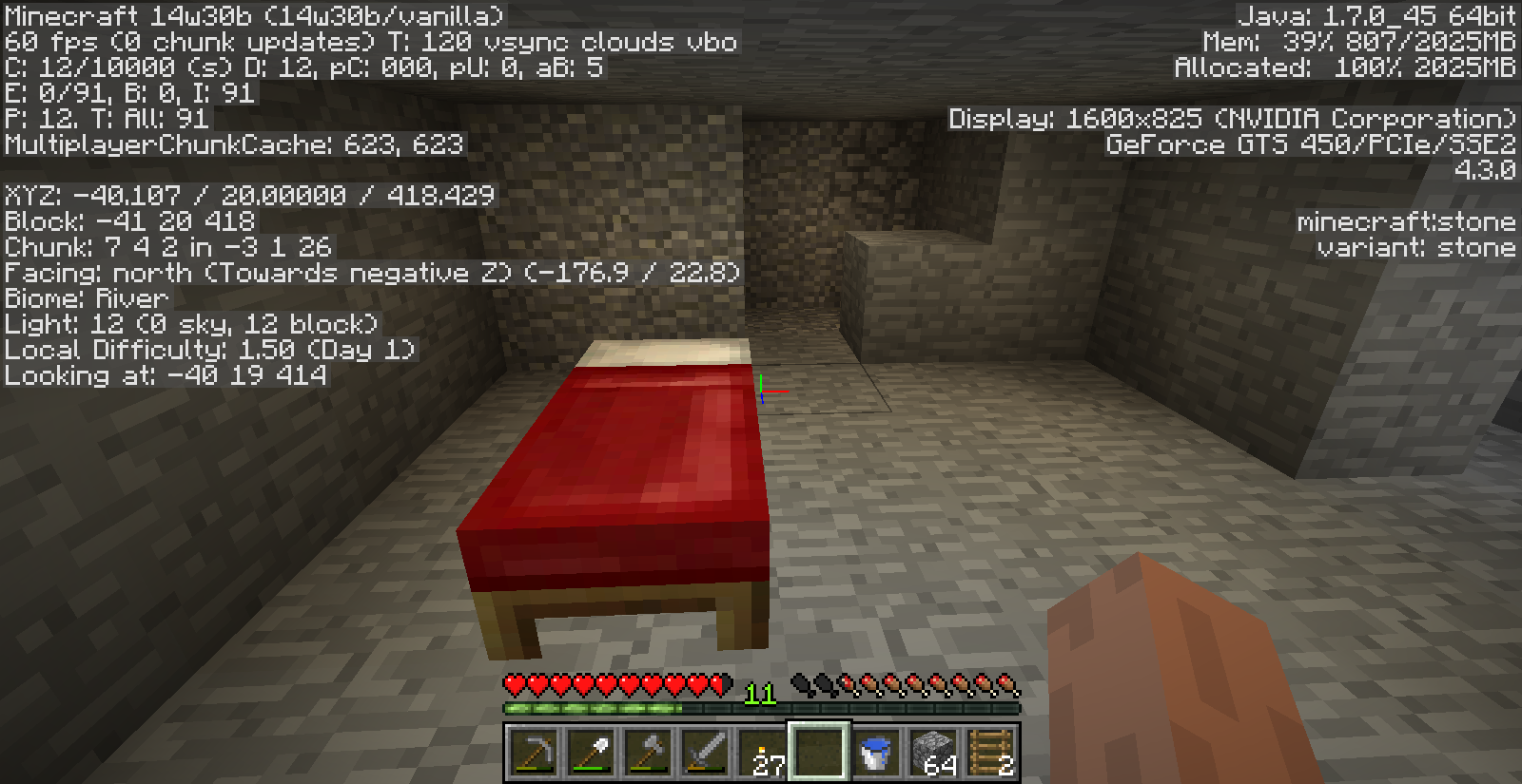 While under ground at layer 20 I mined out a space of 5 length by 5 width by 2 high and placed a bed. It was 1 block away from the west wall and 1 block away from the north wall with the foot of the bed facing south. When it was night, I right clicked on the bed from the foot of the bed looking north and it let me go to sleep. However instead of viewing the bottom side of the blocks of layer 23, the view presented me a shot of the sky littered with stars. I was able to replicate this after setting the time back to night and capturing some screen shots.