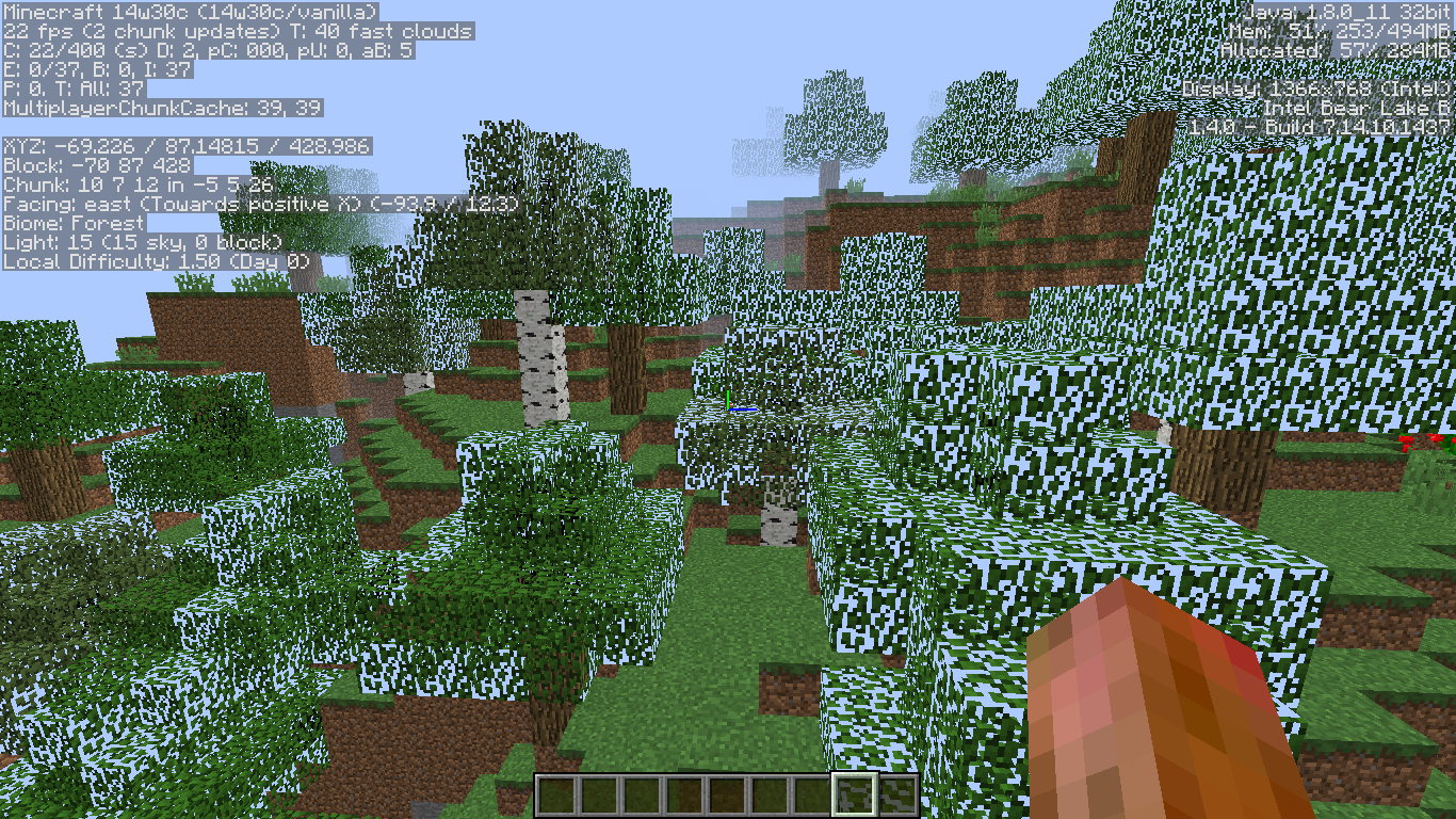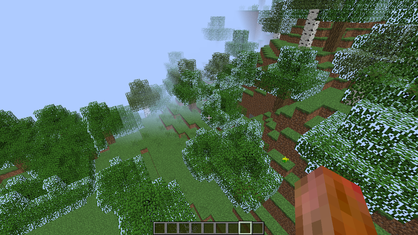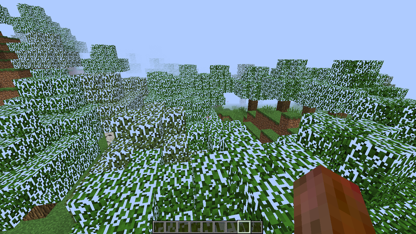 When using fast graphics, leaves continue to use fancy graphics texture. The transparent spaces on the graphic allows the light of the world beyond through, meaning one can look through all the blocks as if it were sky, which can cause severe lag in systems such as mine, especially in forest areas, where it's most prominent and noticeable.