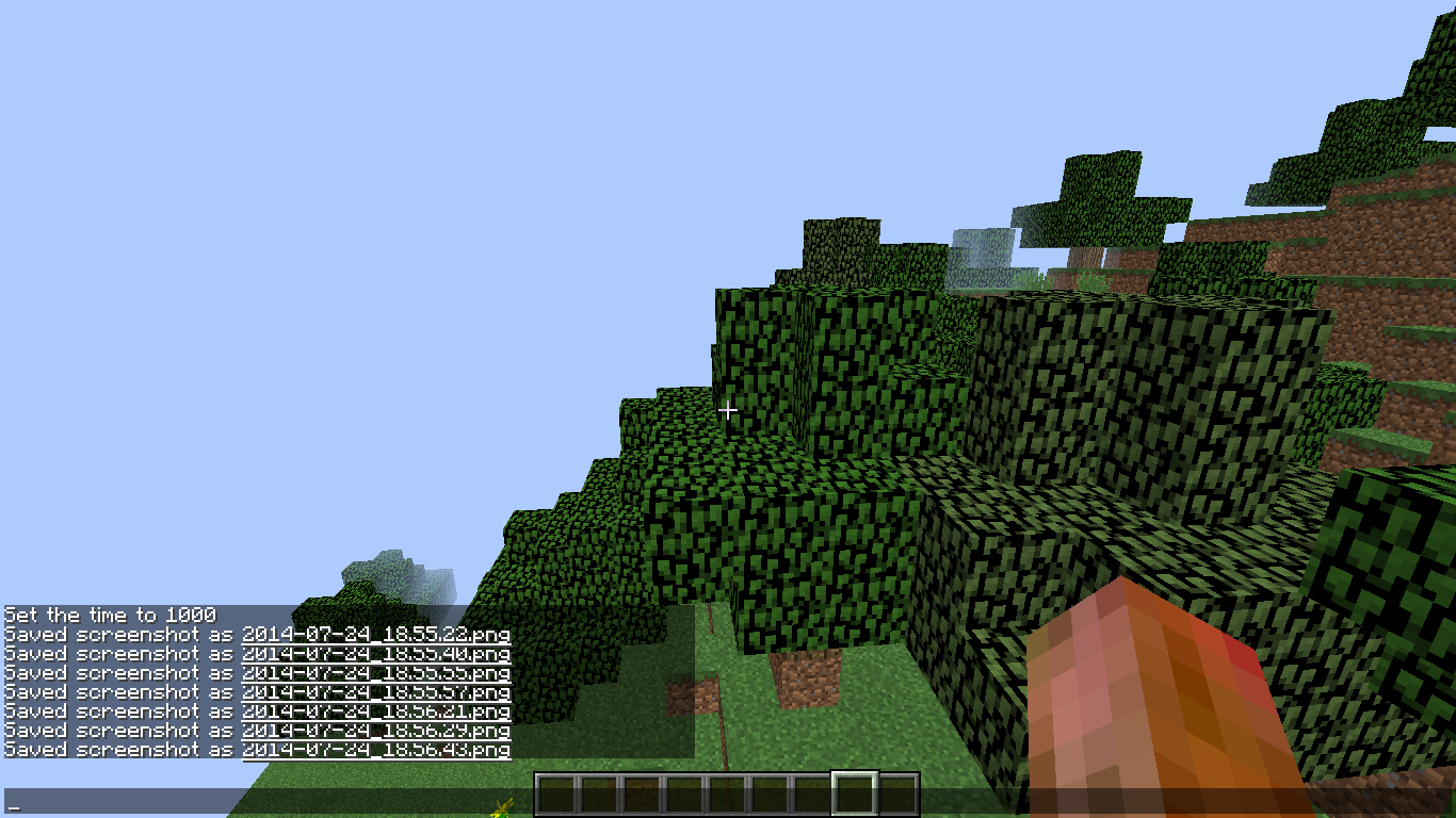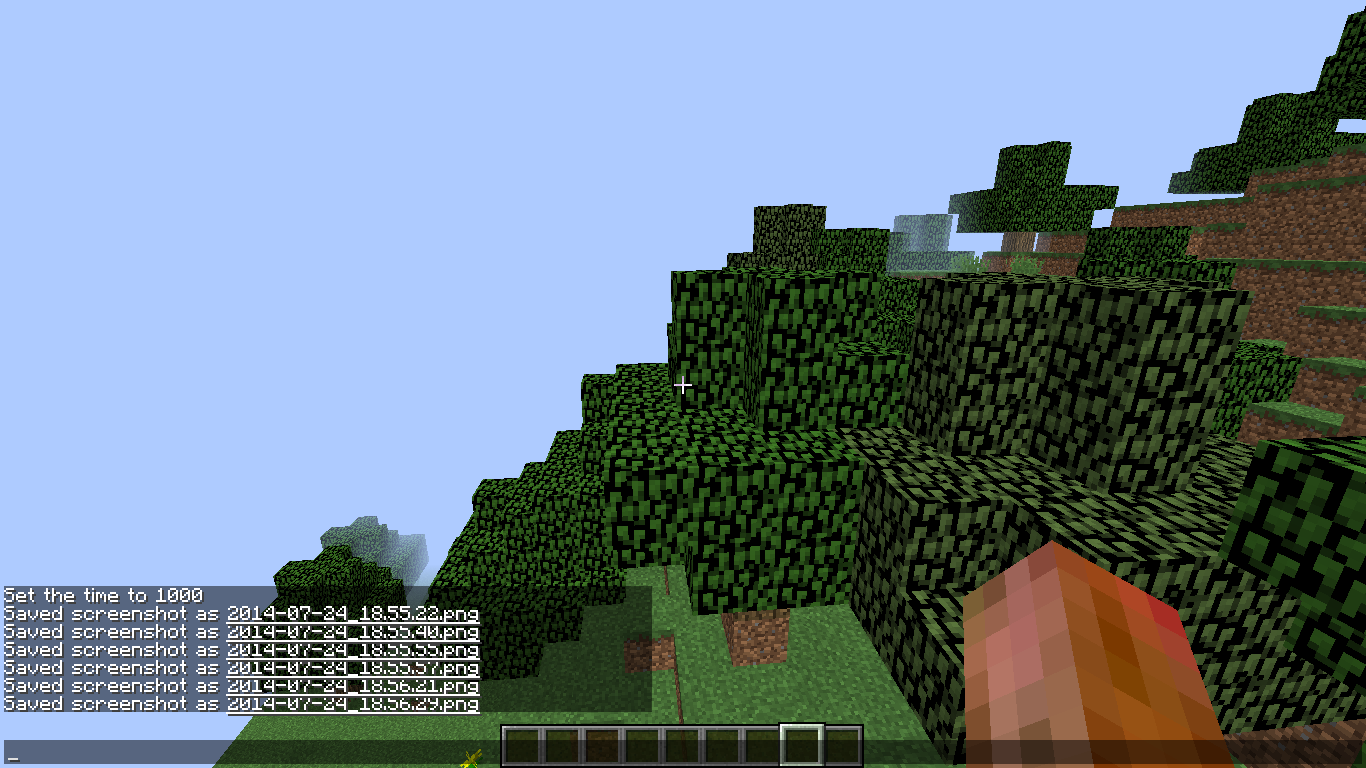The graphics revert back to normal when the chat is shown, or whenever the inventory is hidden - and it doesn't matter what item/block you are holding. It remains glitched even when paused or when viewing the F3 debug screen. It occurs with all leaf block types, and can even be seen in the creative and survival inventory, as well as when held.