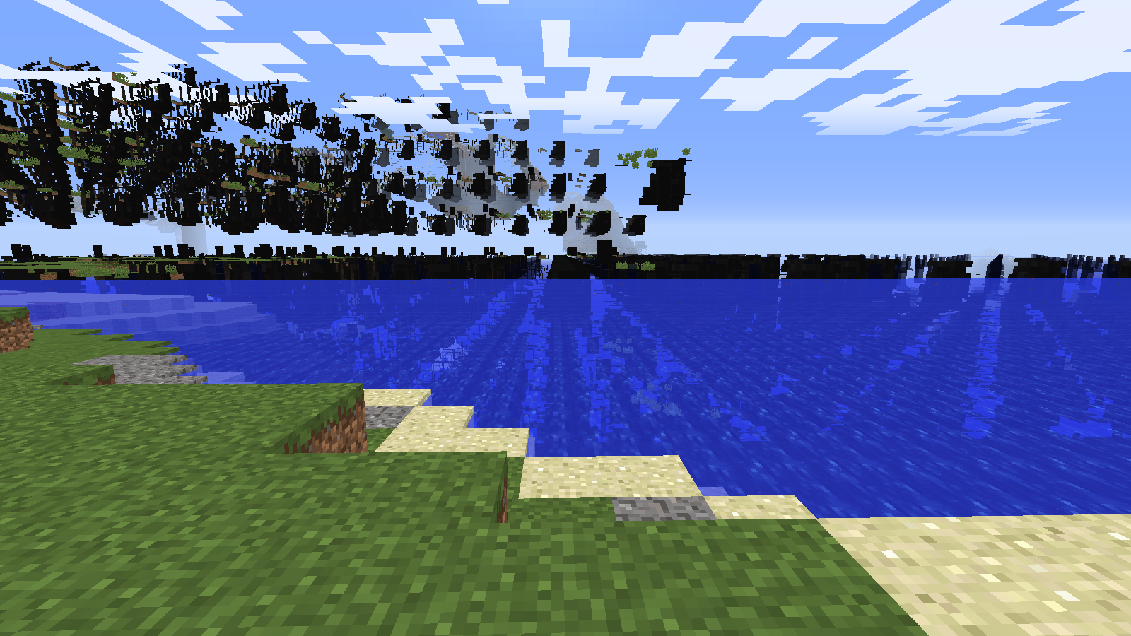 When setting the render distance to 16 chunks, repeating graphical glitches appear in place of the world.