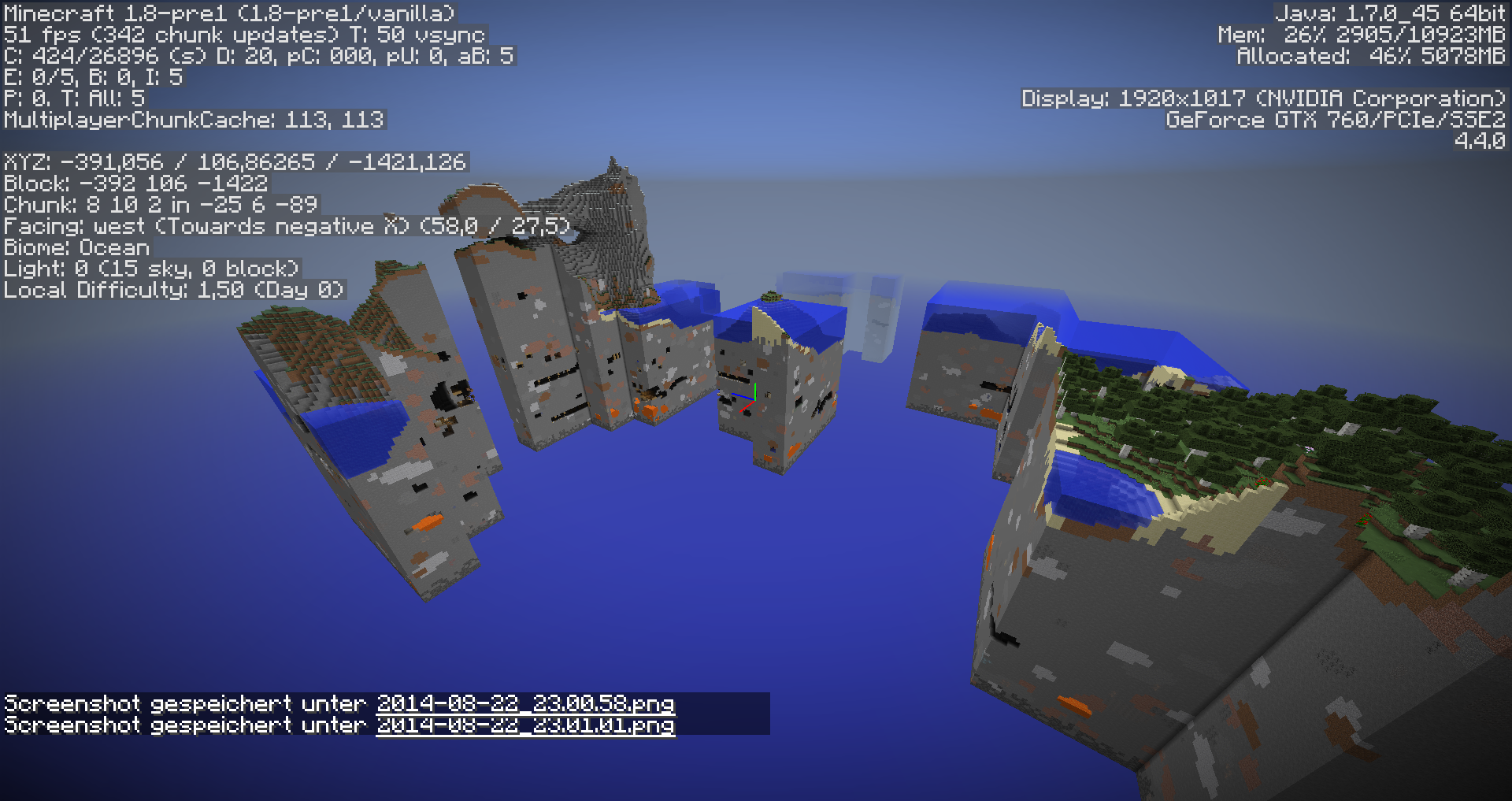 In the second screenshot you can see how much time has passed without the world generating itself.