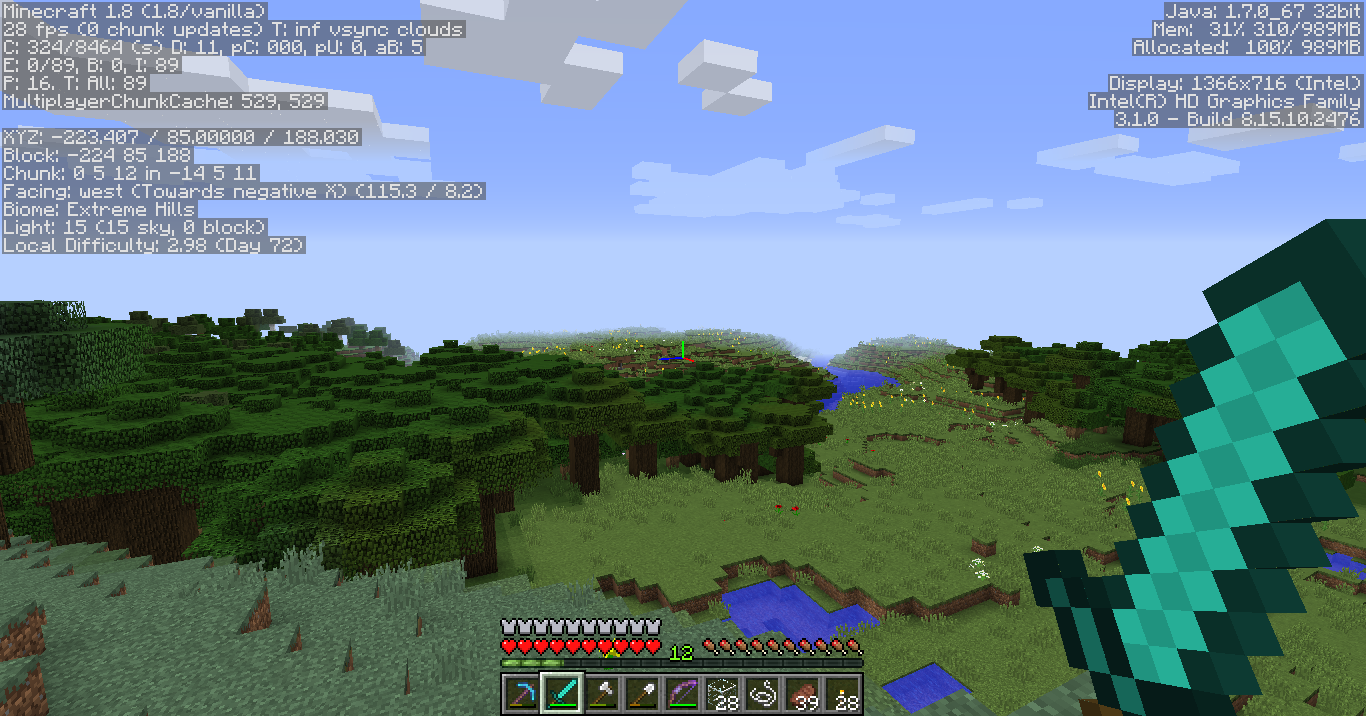 Raising view distance above this seeming threshold of safety (10 in my tests) leads to the glitches becoming evident. Higher view distances induce greater parts of the landscape to glitch until at view 16 (and possibly only for locations >16 chunks from spawn) every visible chunk will glitch.