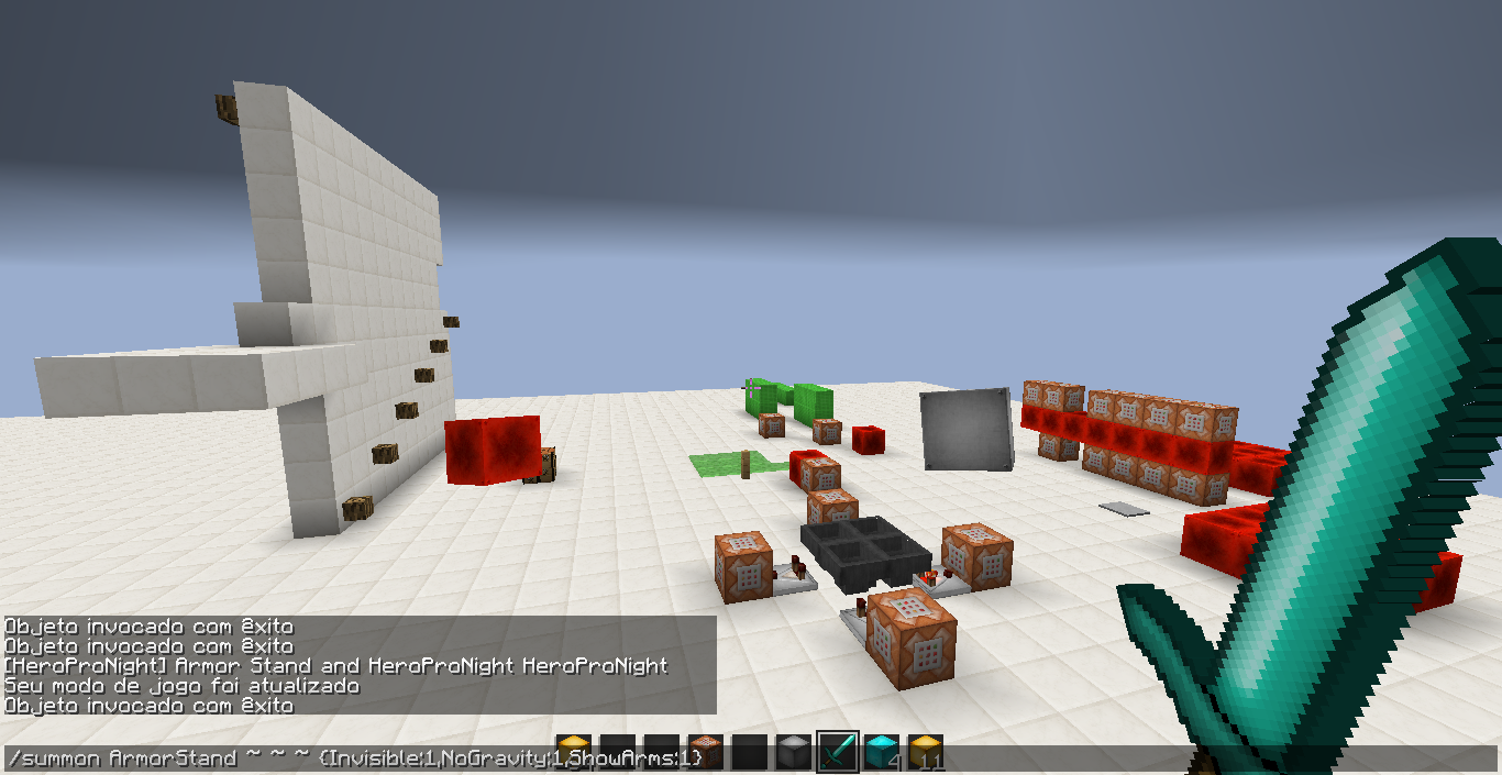 /summon ArmorStand ~ ~ ~ {Invisible:1,NoGravity:1,ShowArms:1}/summon ArmorStand ~ ~ ~ {Invisible:1,NoGravity:1,ShowArms:1}and it worked fine, like on the screenshot, but i can't "kill" it without commands, its look invulnerable even in creative, i need to use /kill @e[type=ArmorStand,c=1] to kill it...