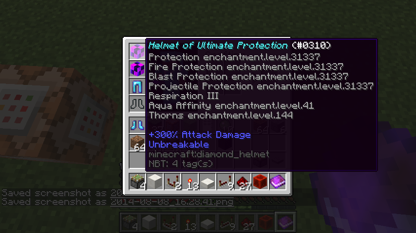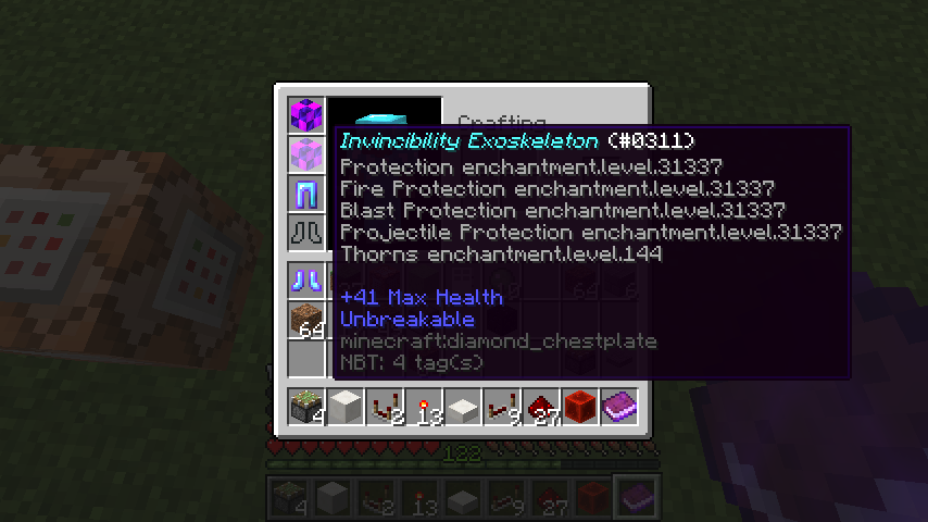 I used a command to give me some really awesome armor, but if I get shot with an arrow I crash.