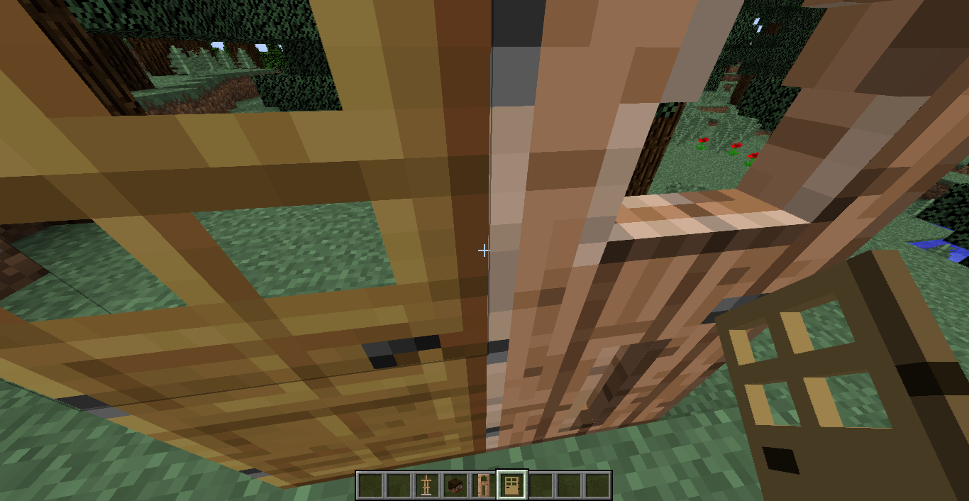 This happens with the old normal door (Oak door) and the iron door, but just when you're holding it in your hand. When you place it, it looks flat, as it doesn't had any peepholes. This model is inconsistent with the new ones.