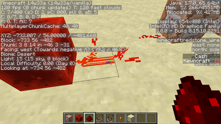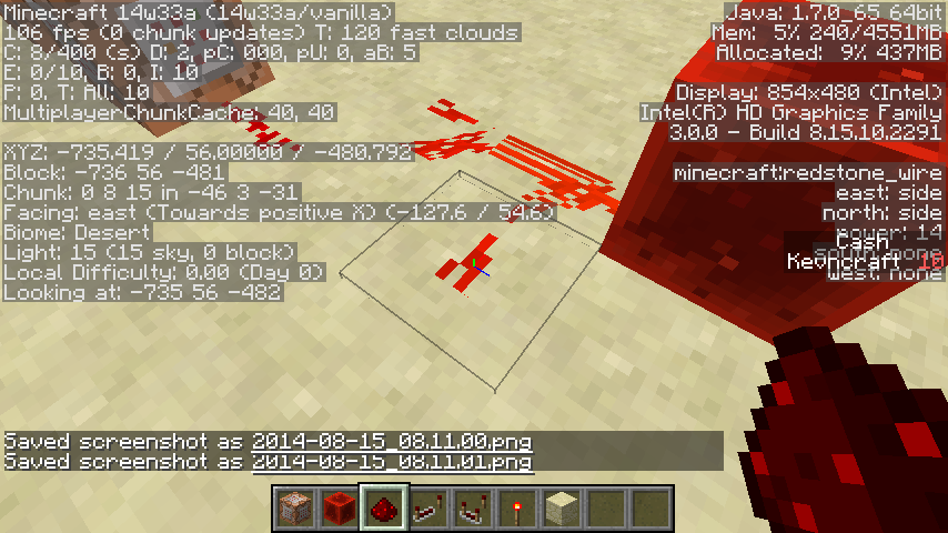 When I place redstone it looks weird. I believe that is because the redstone is placed according to how someone over in some direction would see it as. I have sometimes found the location and the redstone looks normal, but when I move close up it is kept looking like it would for my old perspective. Here is proof (note: sometimes i was in F3 mode to prove I was is 14w33a).