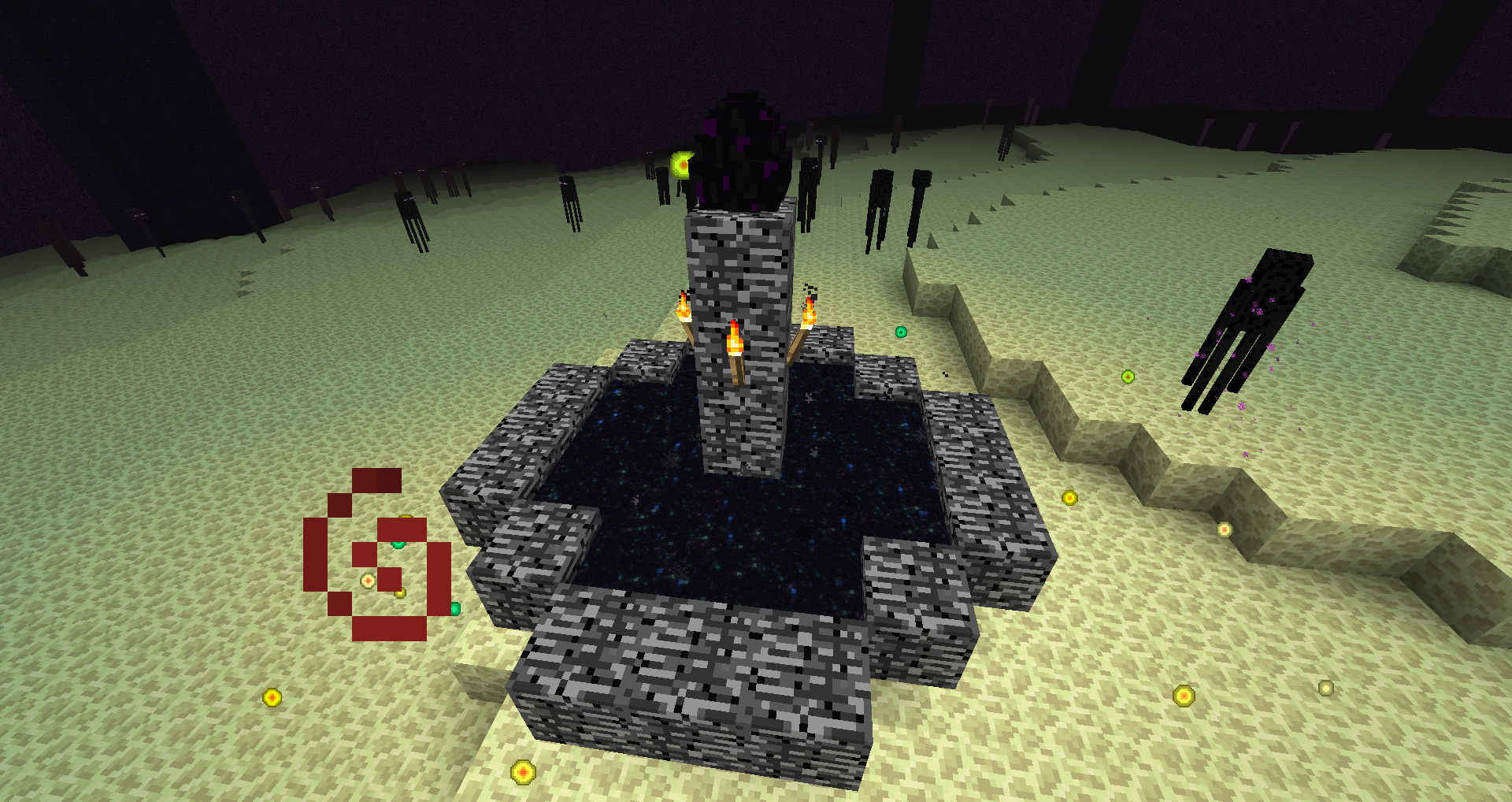 This creates the torches but these fall because they are in the wrong position.