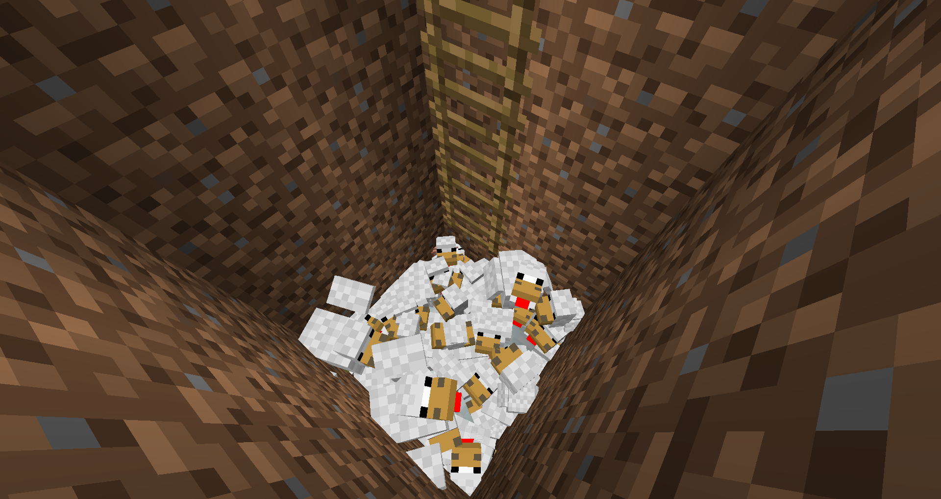 A hole with a snow ground and a ladder above will sometime kill the chickens.