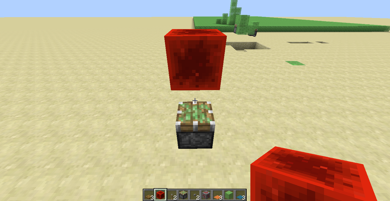 2. place redstone block two blocks over the piston without placing any blocks directly next to the piston.