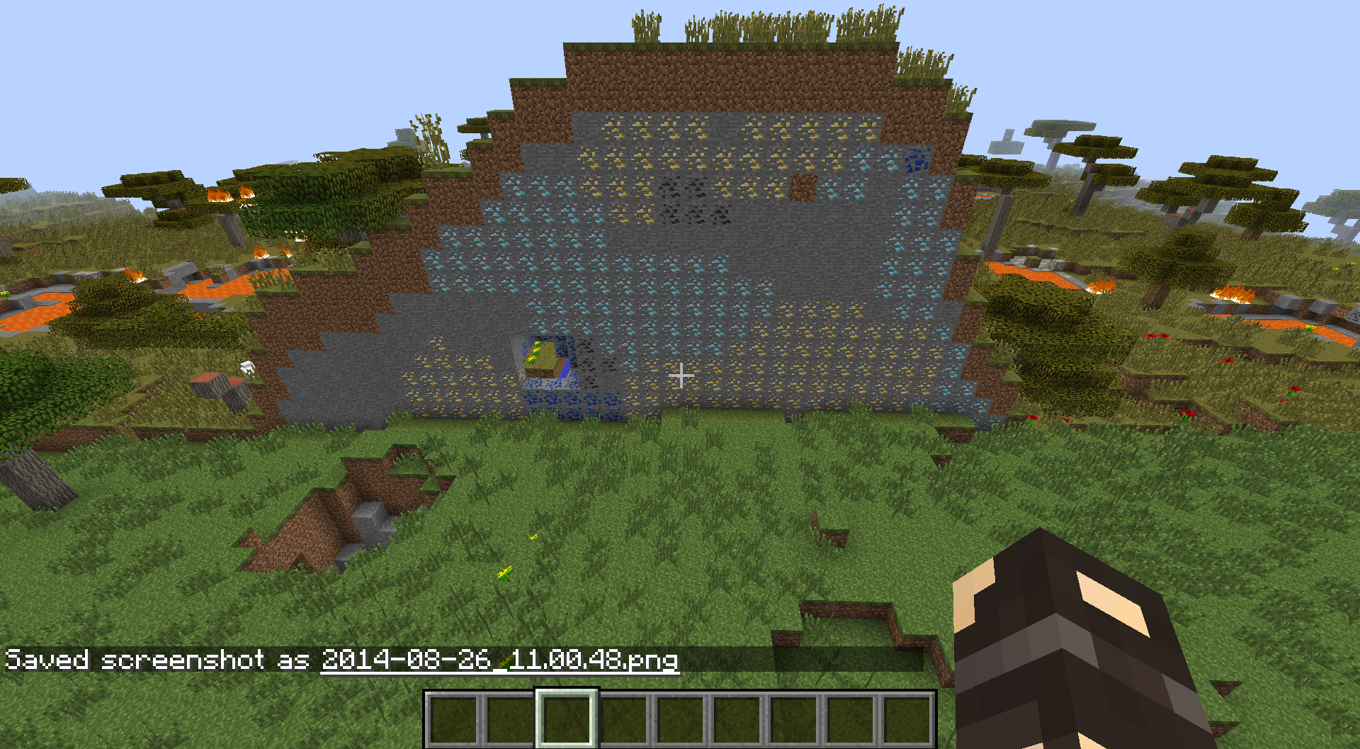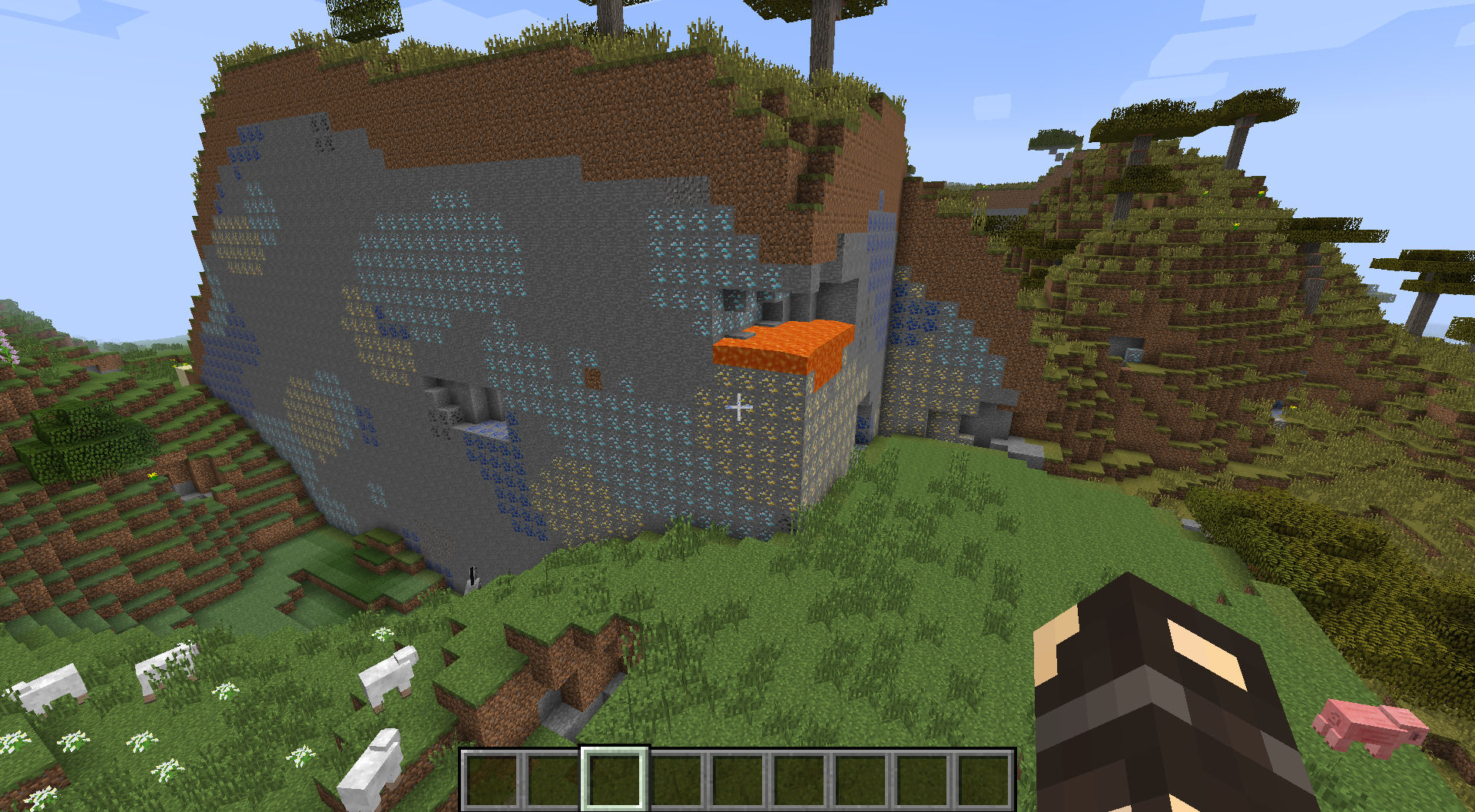 Then I made another world, this time I manually changed the seed to the same one as the world before (-630666582824199719). The terrain was completely different (I also checked the spawn coordinates, they were the same), but there were some gliches as well, for example: