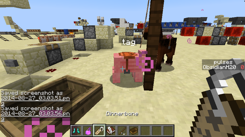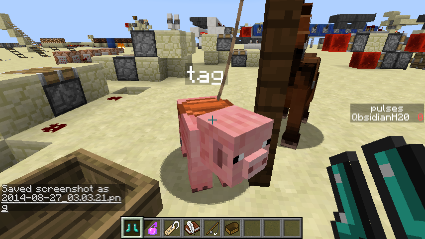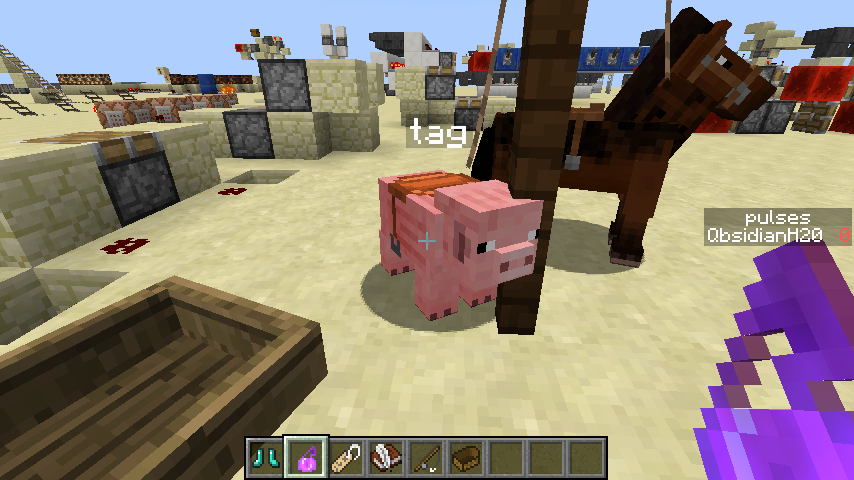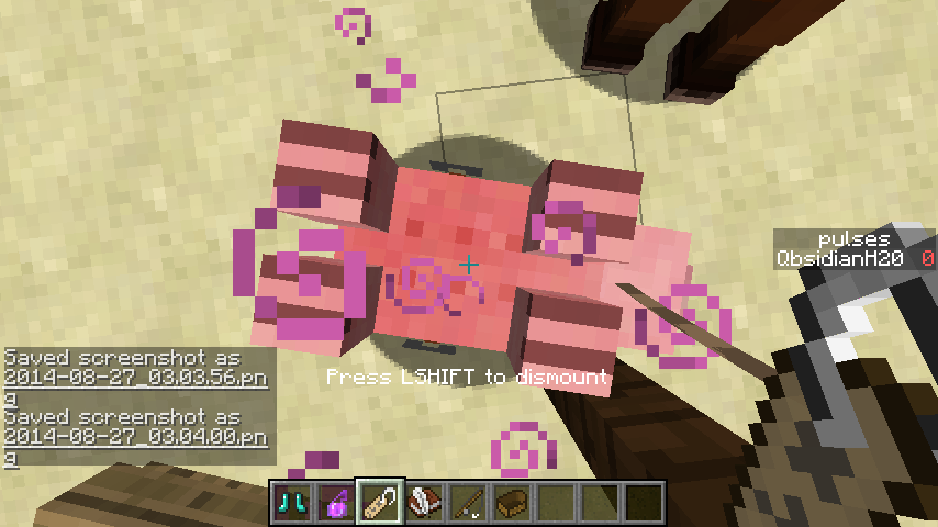 3. you will ride pig, and also trigger the right click action (wearing armor, throwing projectiles, naming, writing a book, trying to fish a pig... etc)