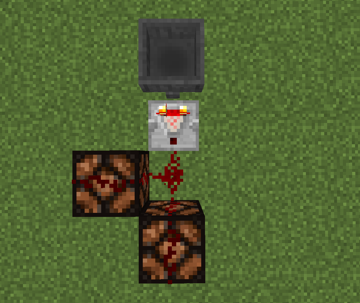 So... if you place a hopper, put an Item in it and a komparator next to it so it creates a signal with a power of 1.