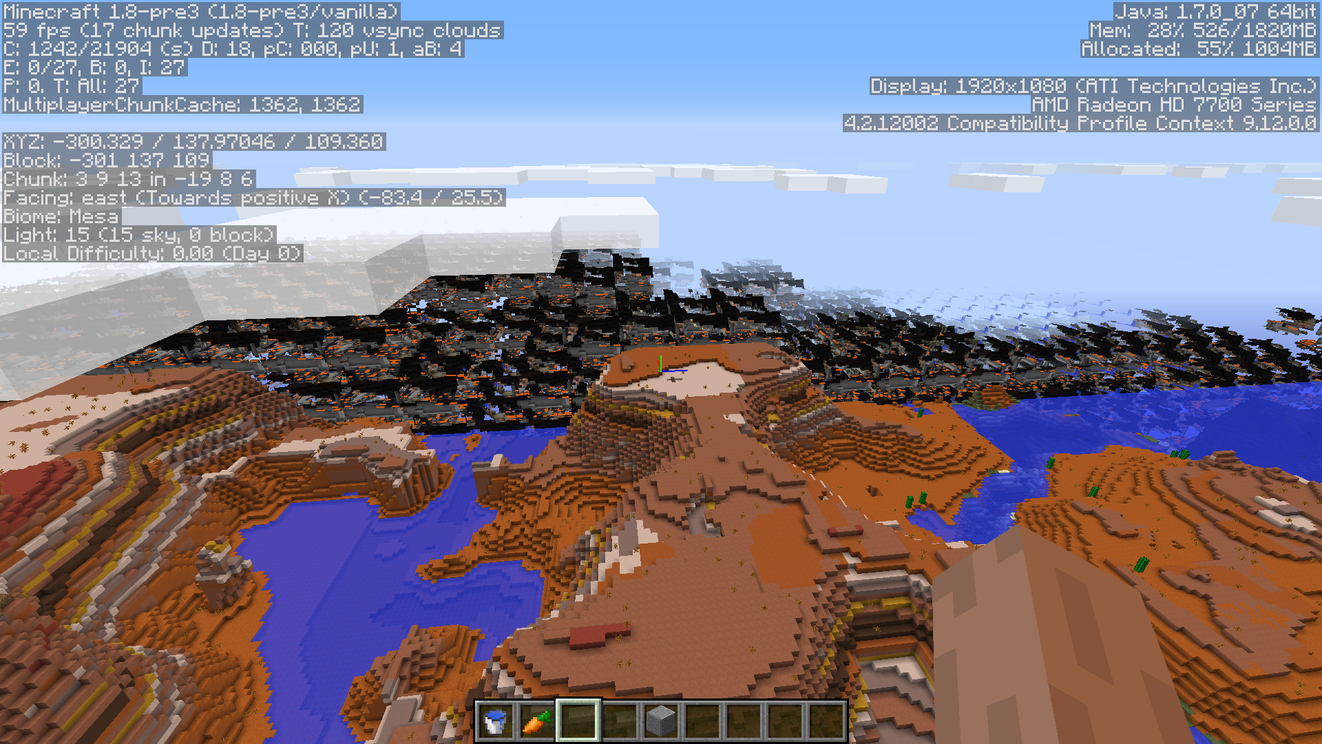 From starting a new world playing with a chunk distance of 10 works fine. Increasing this appears to corrupt the world in huge areas. The higher the chunk distance the worse it gets. I've tried this up to 18 chunks. This is visual only, the world is not corrupted. This appears in single and multi-player. See screen shots.