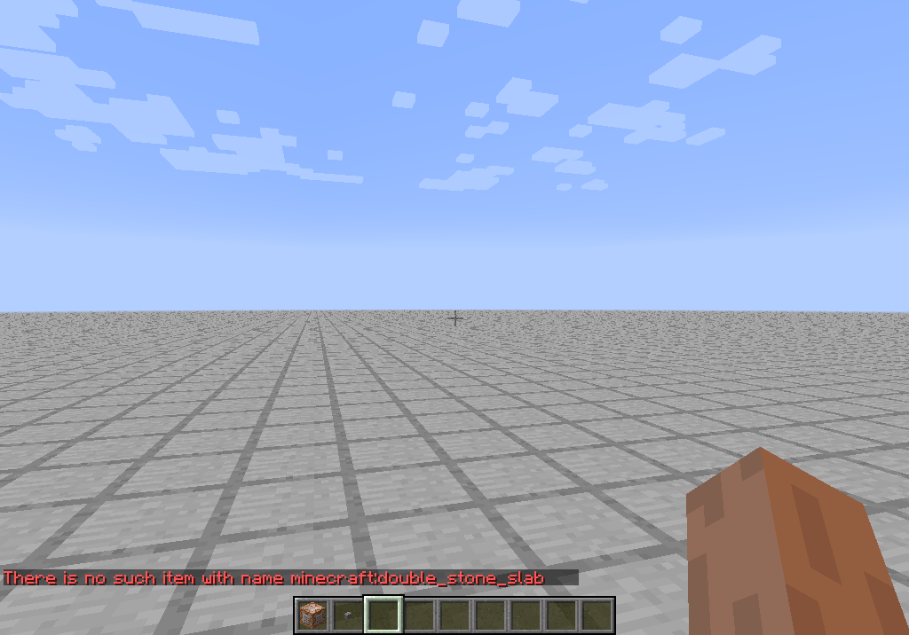 The game seems to not recognise some block "codes" ingame. When creating a new flatlands world, I typed the old ID of the full stone slab (43:8) and it successfully converted it to "minecraft:double_stone_slab:8" (making "minecraft:double_stone_slab" the actual block "code"). It didnt show the block in the list, instead there was just air, unlike in previous versions. The block appeared normally ingame, but was unobtainable through commands, no matter if it was through a command block or me typing it. I tried installing Too Many Items and it couldnt find it too.