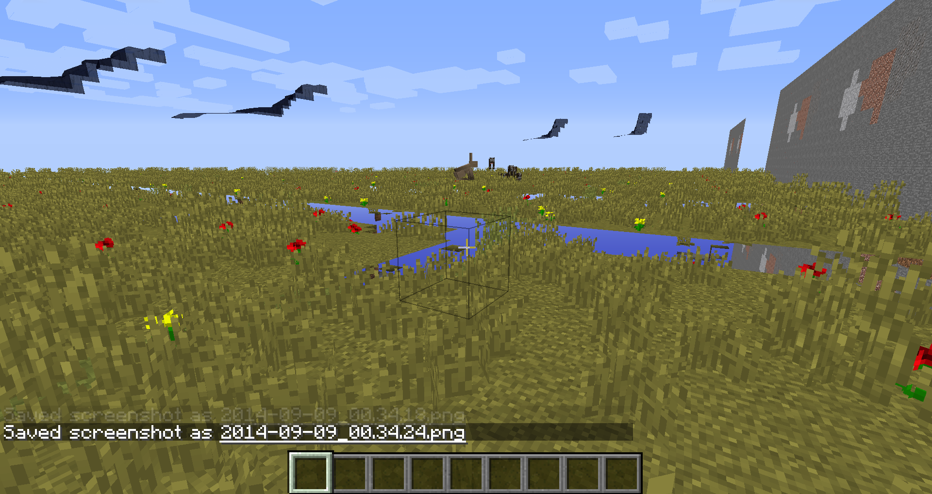 In a new Hardcore mode game generated in 1.8, a spherical cloud moved in front of/around me on my second time playing in it. In the inventory screen I am invisible. The cloud comes through walls, but I didn't get a screenshot of it. I deleted the world and made a new one in creative using the same seed as before. I didn't move. Even looking straight without moving, the terrain was changing frequently but not rapidly between different biomes and transparencies. The wire block frame highlighted invisible blocks, but you could see straight through them. I took four screenies looking in the same general direction without moving anywhere. I never picked up any items and was not holding anything when these were taken.