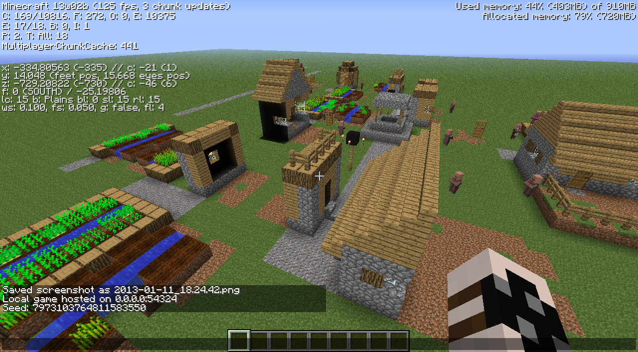 I noticed in my screen-shot for MC-6951 that the torches that spawned with the village were floating. While attempting to reproduce the issue in 13w02b the villages I found were all kinds of messed up. Most buildings spawn half cut-off Some not at all; just dirt squares on the ground with doors at the edge. Some of the gardens had holes sporadically through them - like a checkerboard. This was all in a superflat world