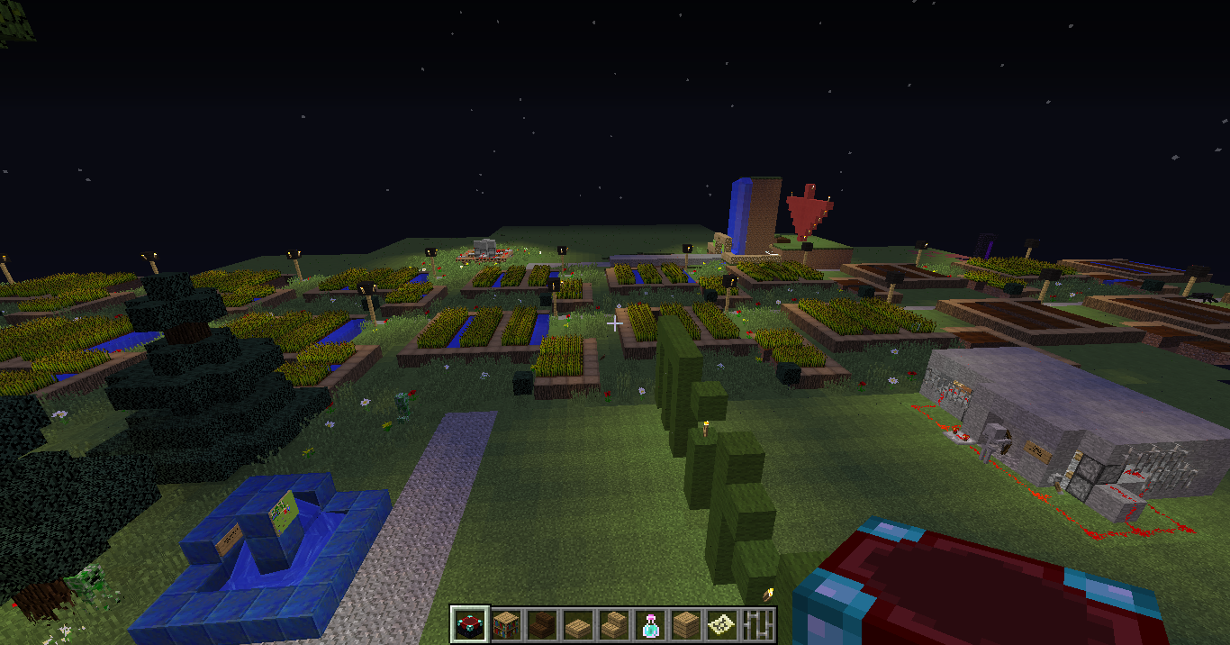 *What actually happened was the buildings withen about a 5 chunks radius copied and paste rapidly through 2 row of chunks"