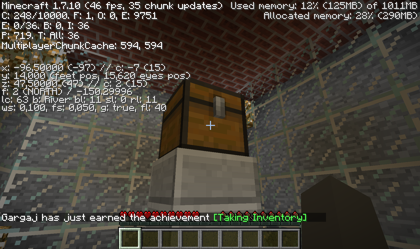 • On 1.8.x, the chest is missing completely - no hitbox, it is possible to walk through the empty space.
