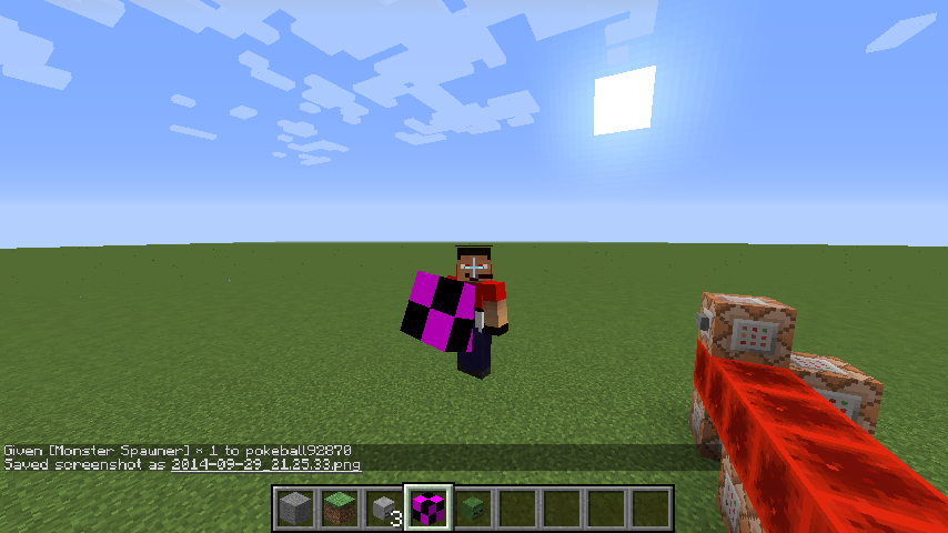 NOTE: This glitch/bug is also encountered when viewing other players holding a missing texture block in servers.