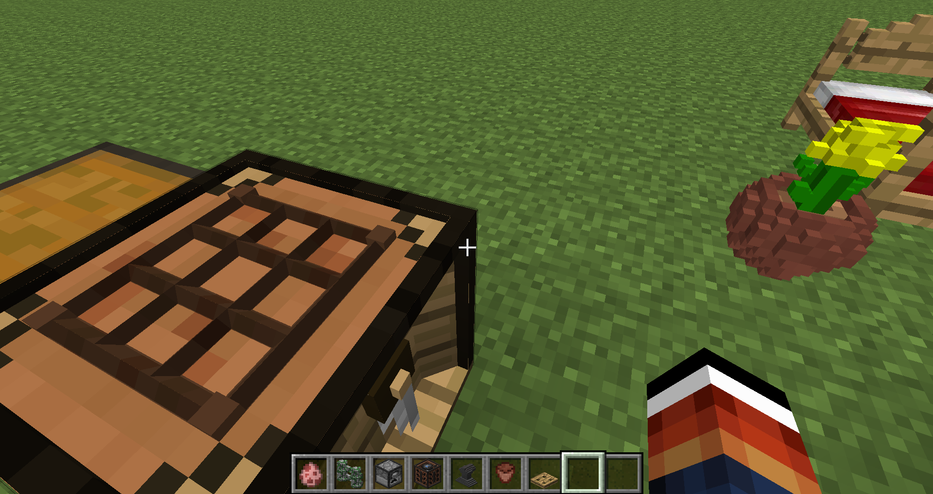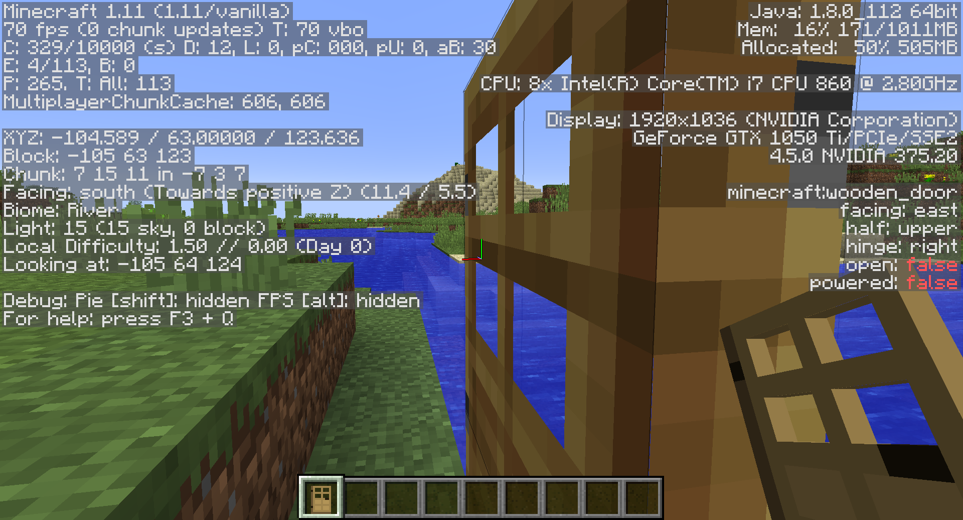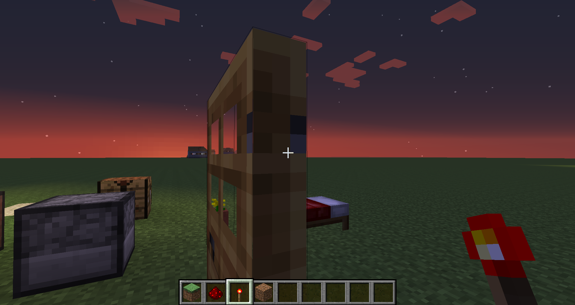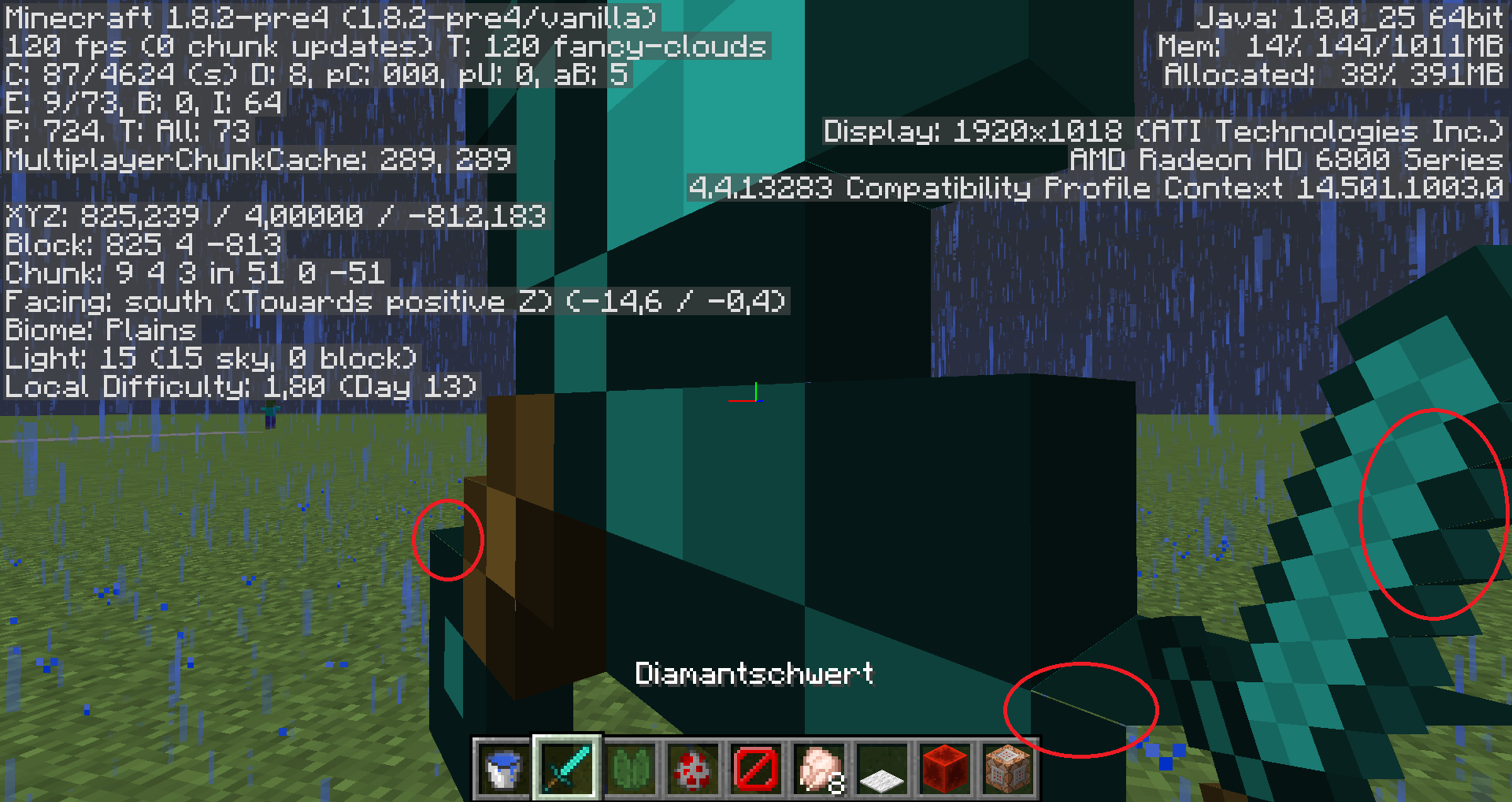 The right screenshot is the default texture pack (the one with the door and the sky in the background) 🙂