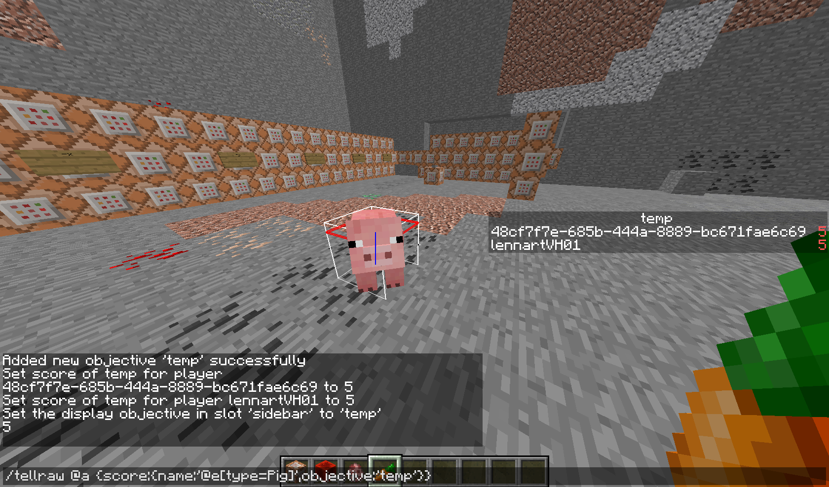 /scoreboard players set @e[type=Pig] temp 5