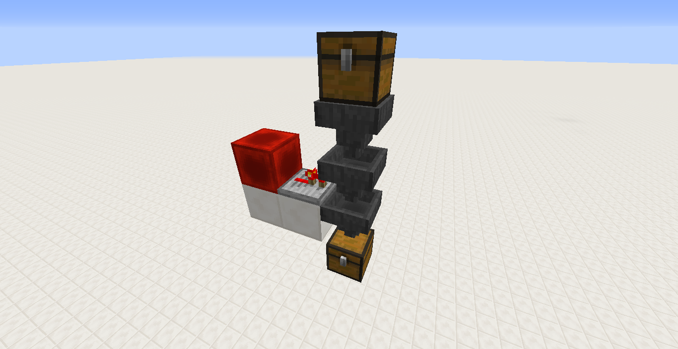 I put 3 hoppers in column, each one facing the one underneath, and a redstone block next to the one in the center.