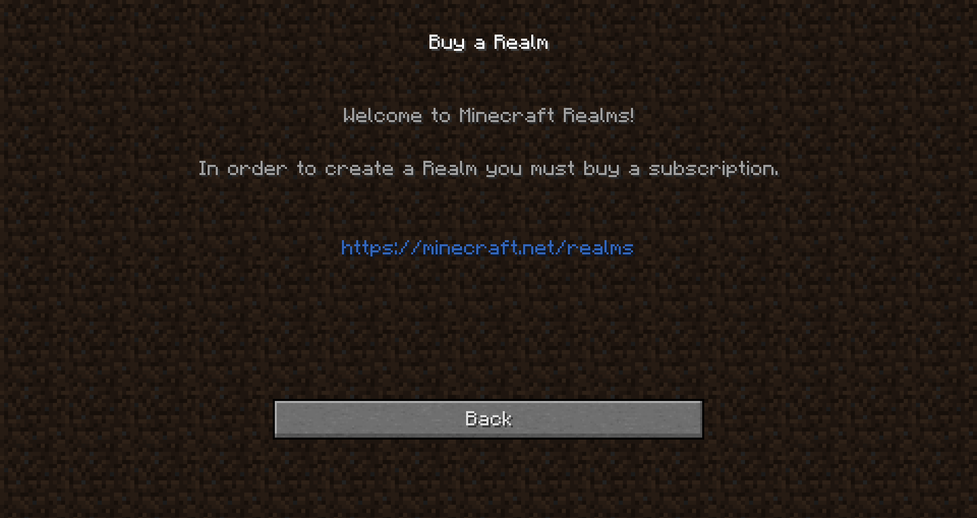 When you go to the realms and then click "Buy a realm" while having no internet connection the "Back" button won't appear and you can only quit the window by pressing ESC.