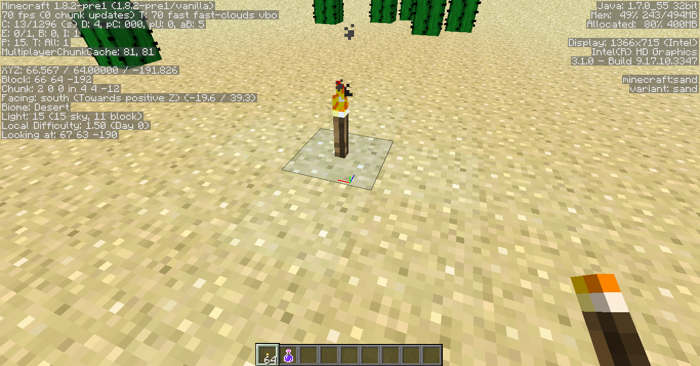 Torches are not properly giving light in 1.8.2-pre1. Isn't seem to happen in other versions