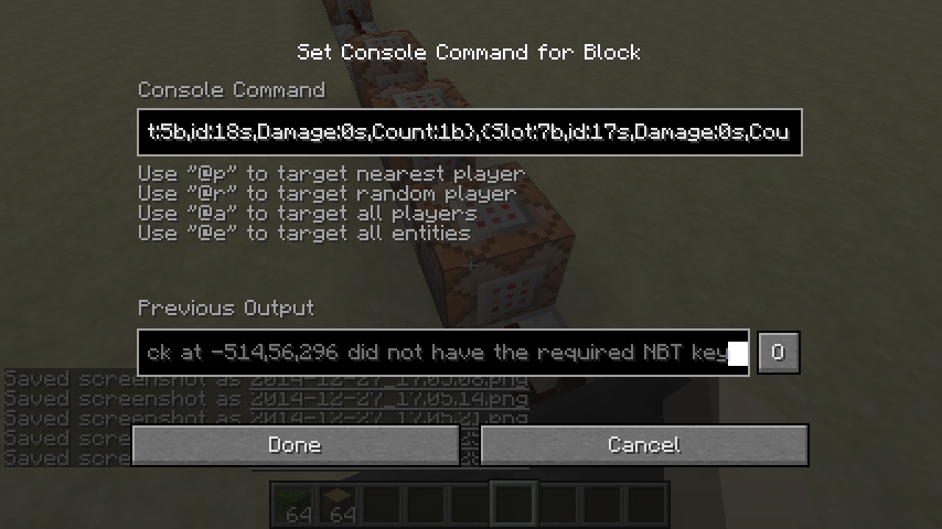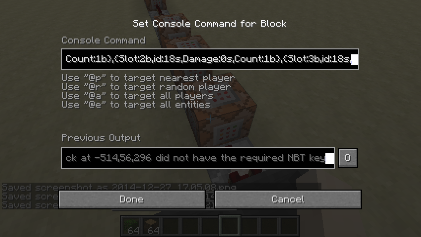So, I made a 1.7.10 world and deicded to put a personalized crafting system, and wanted to put the world in 1.8.1 but when the NBT tags matched the command block said the NBT tags didn't match.