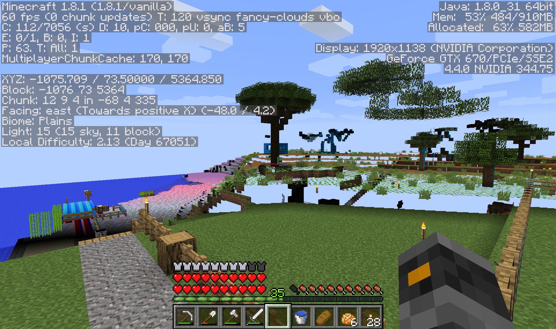 Colors of distant blocks go crazy at random times after breaking blocks. Changing video settings doesn't make it go away. Only thing that fixes it is restarting minecraft.