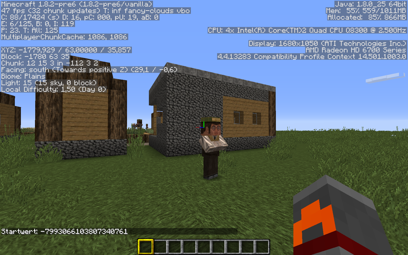 Lava is flowing onto the ground behind this blacksmith, despite not being connected to the source blocks. The hole in the rear wall was already present when I found it.