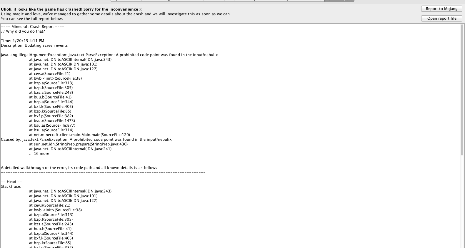 at java.net.IDN.toASCII(IDN.java:101)
