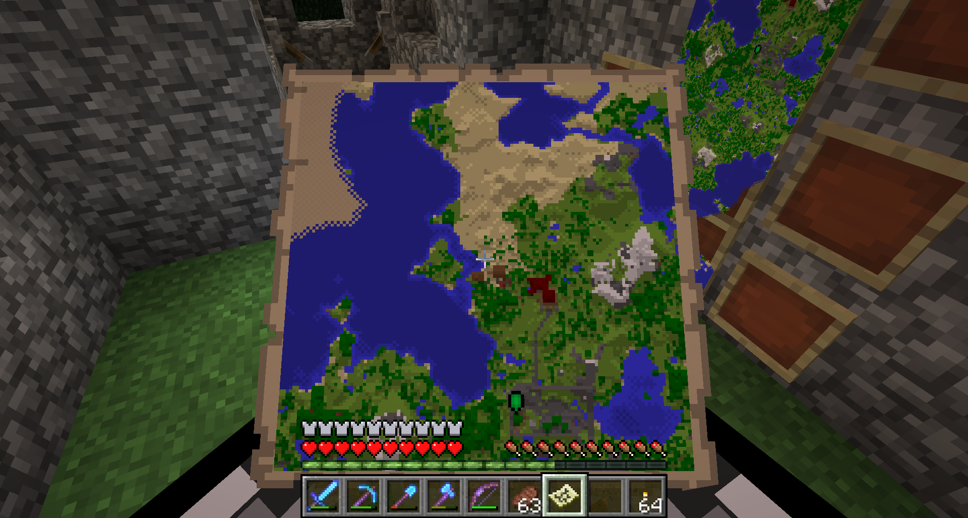 In the picture below, a white arrow should be overlapping the green arrow, since my character is standing right next to the same map displayed on a wall.