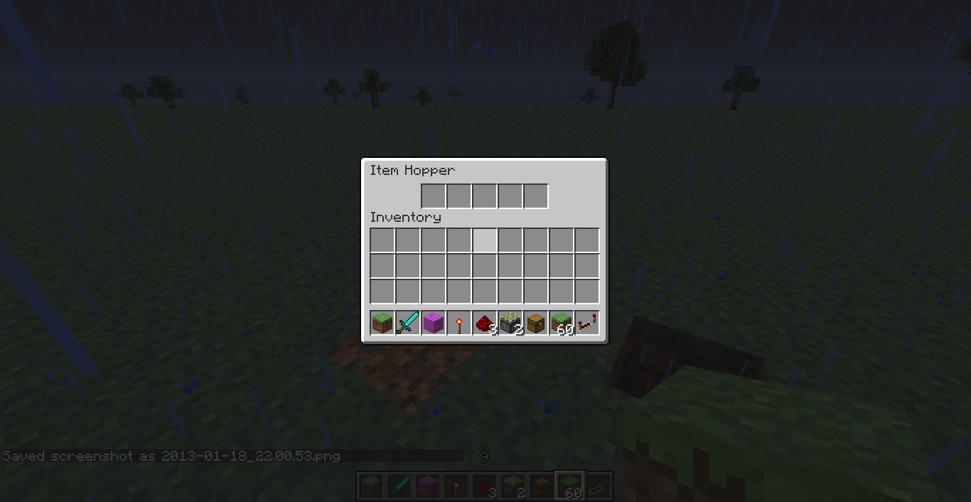 1. Place these blocks in the order as follows: hopper, redstone block, extended sticky piston facing the redstone block