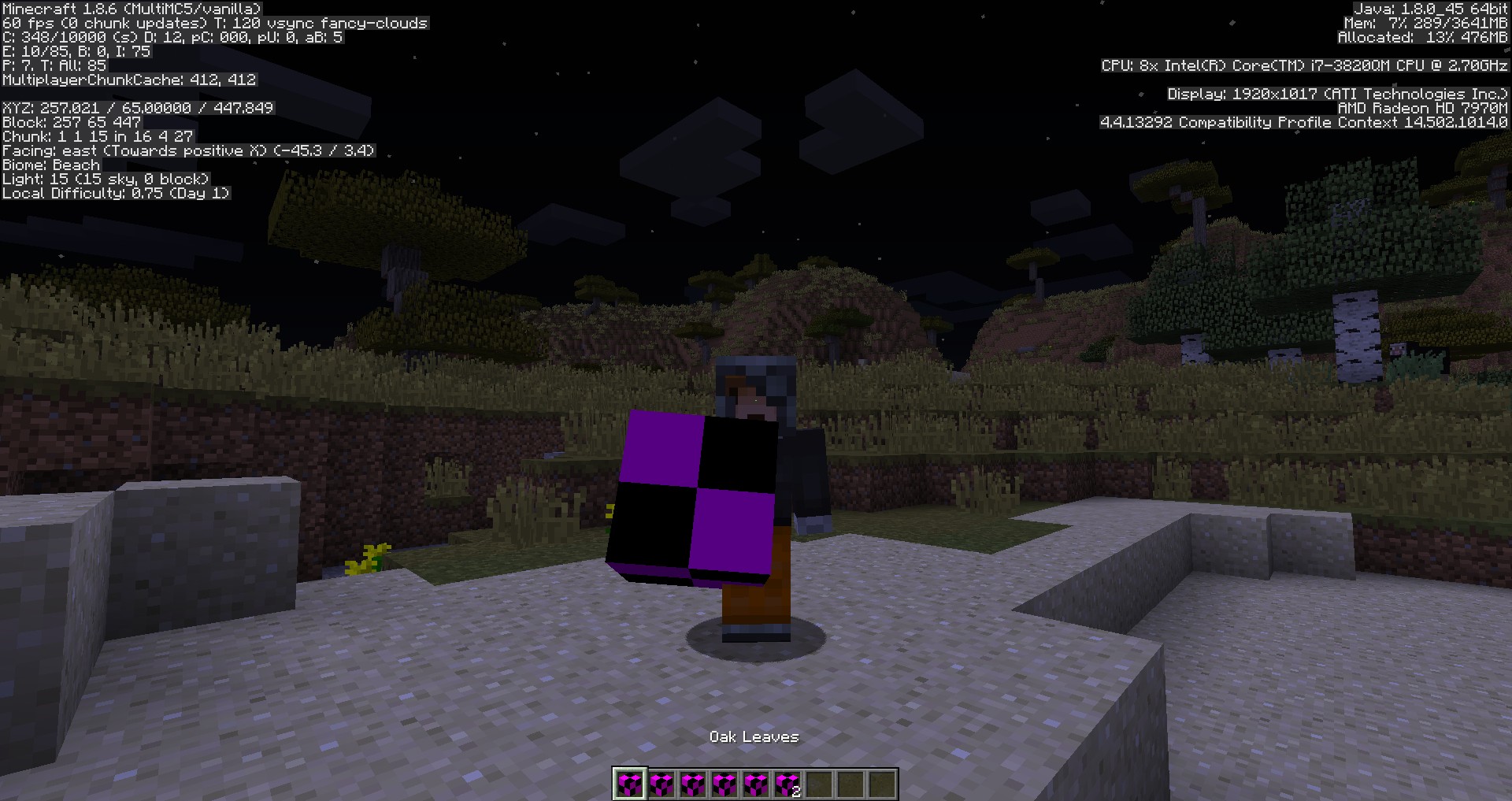 When holding these blocks the items appear much bigger than they normally should. All checks done in vanilla.