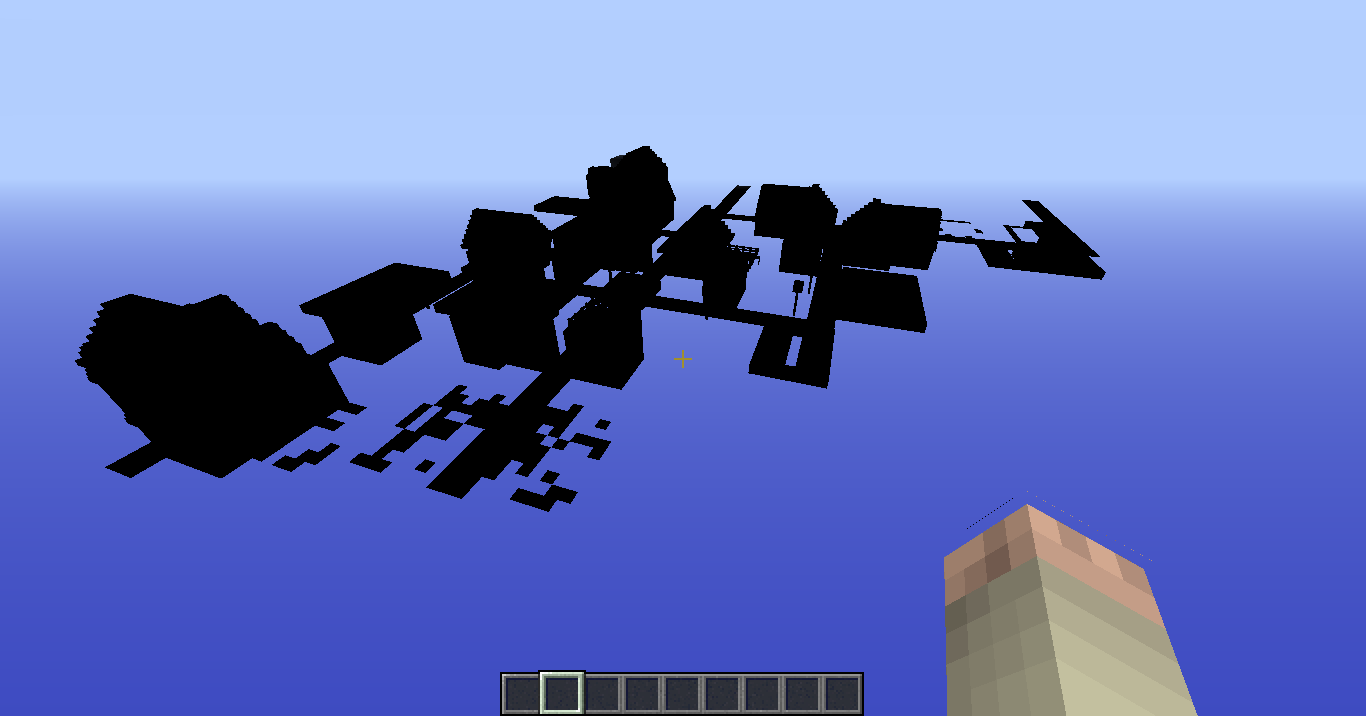 I load a superflat world and the terrain was invisible. A village was rendered entirely in black. The villagers were cool, though. I added (size=0,distance=1) at the end of the superflat file.