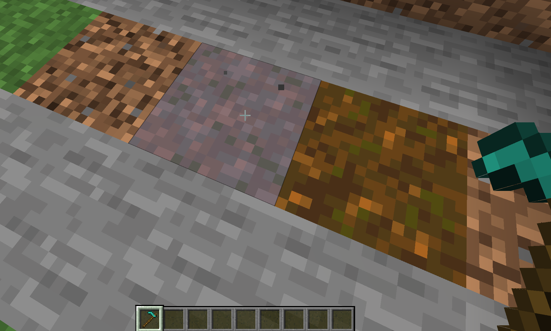 Take note as to what blocks you can use the hoe on and what blocks you can't.