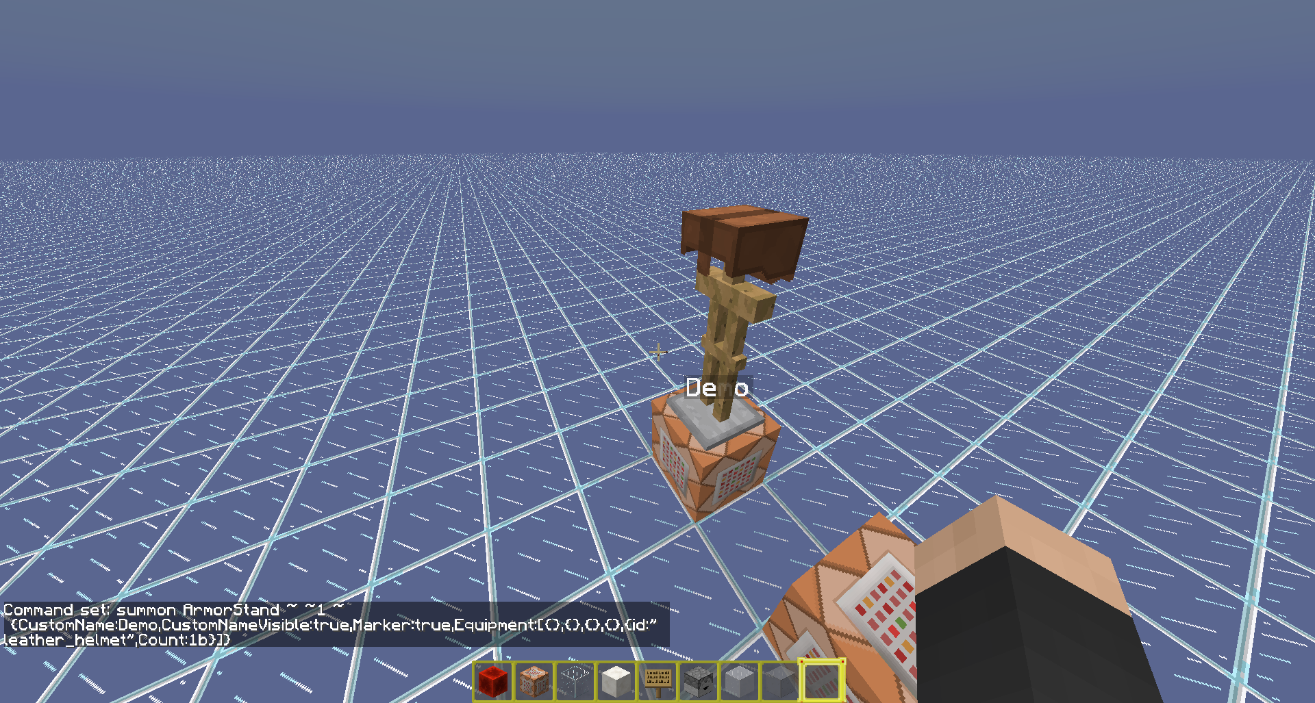 /summon ArmorStand ~20 ~1 ~ {Invulnerable:true,Invisible:true,Marker:true,CustomName:"I'm a Marker",CustomNameVisible:true}/summon ArmorStand ~20 ~1 ~ {Invulnerable:true,Invisible:true,Marker:true,CustomName:"I'm a Marker",CustomNameVisible:true}While almost the same effect, all it does is make the summoned ArmorStand invisible(Use Gamemode 3 to see). While you cannot "see" the ArmorStand it is still 'rendered' Including any items ON the ArmorStand regardless of what Invisible is set to. While with how Marker is defined(and from what people have said on various threads/shown on YouTube. Marker stops the ArmorStand or anything equipped from being rendered. This is important because it can reduce lag significantly when large amounts of ArmorStands are used in a map.