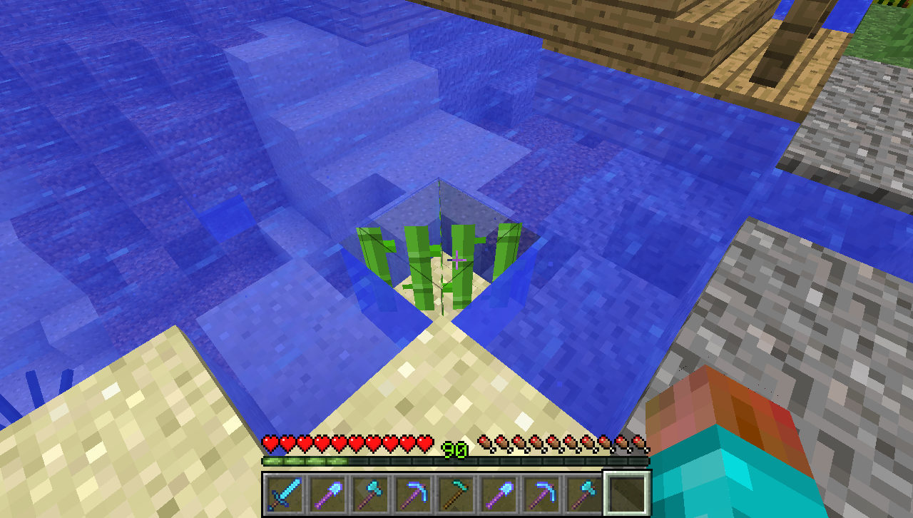 I was making a sugarcane farm and i accidentally placed a sugar cane in the water, and it stayed there.