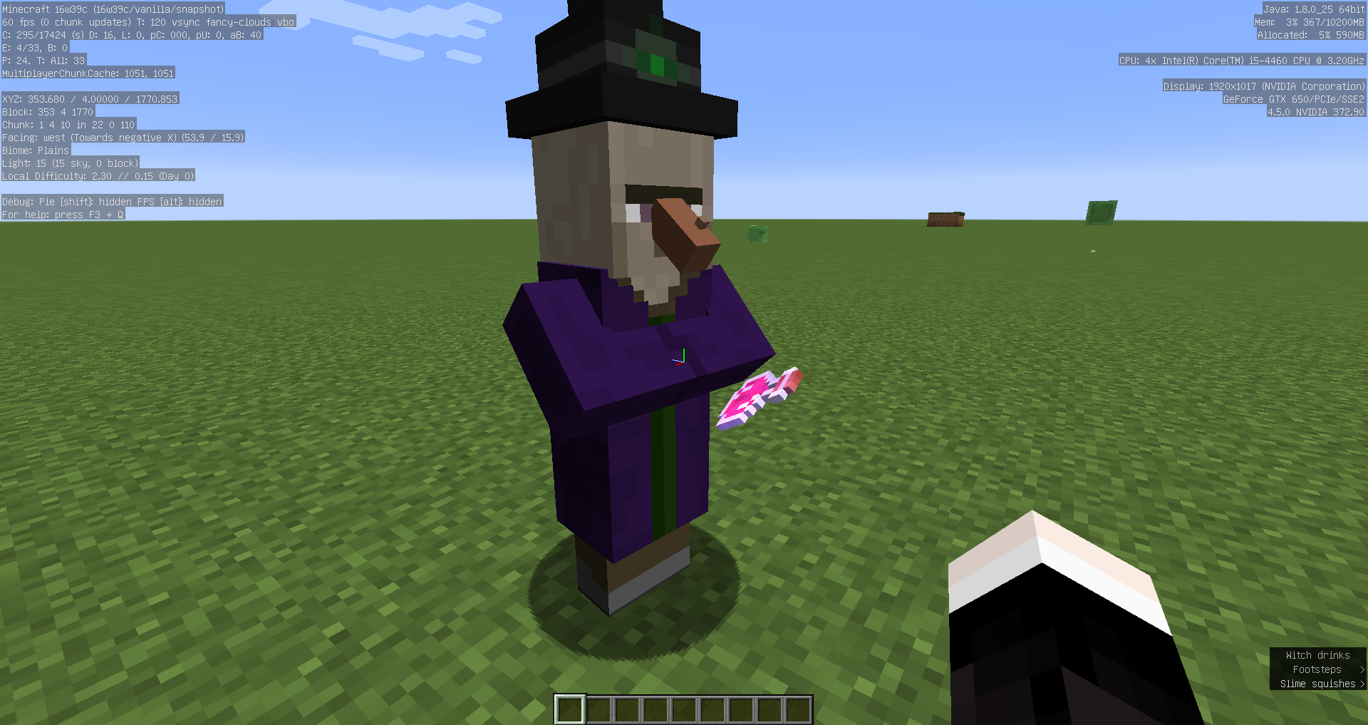 When a witch holds a potion, it looks like the player held item position. This is caused because it actually uses the position/type from the player.