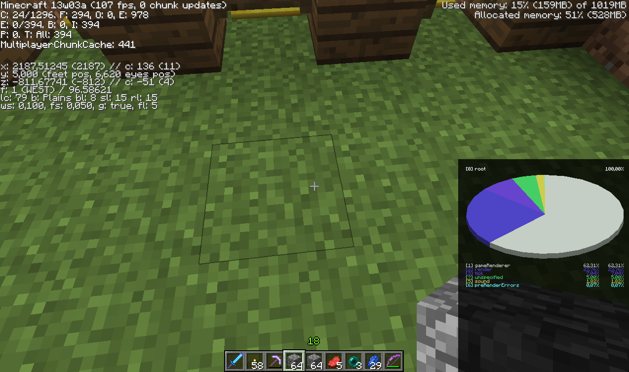 And please attach screenshots of 13w03a and 13w04a with the F3 debug screen shown.