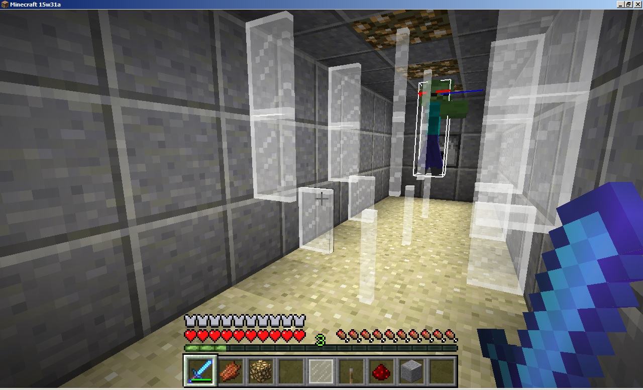 The mob may jump on the first glass plane (obviously knows there's a player), but then stops, or spins, or some other crazy AI movement. The AI will reset if the player moves sideways and the line of sight is re-established.