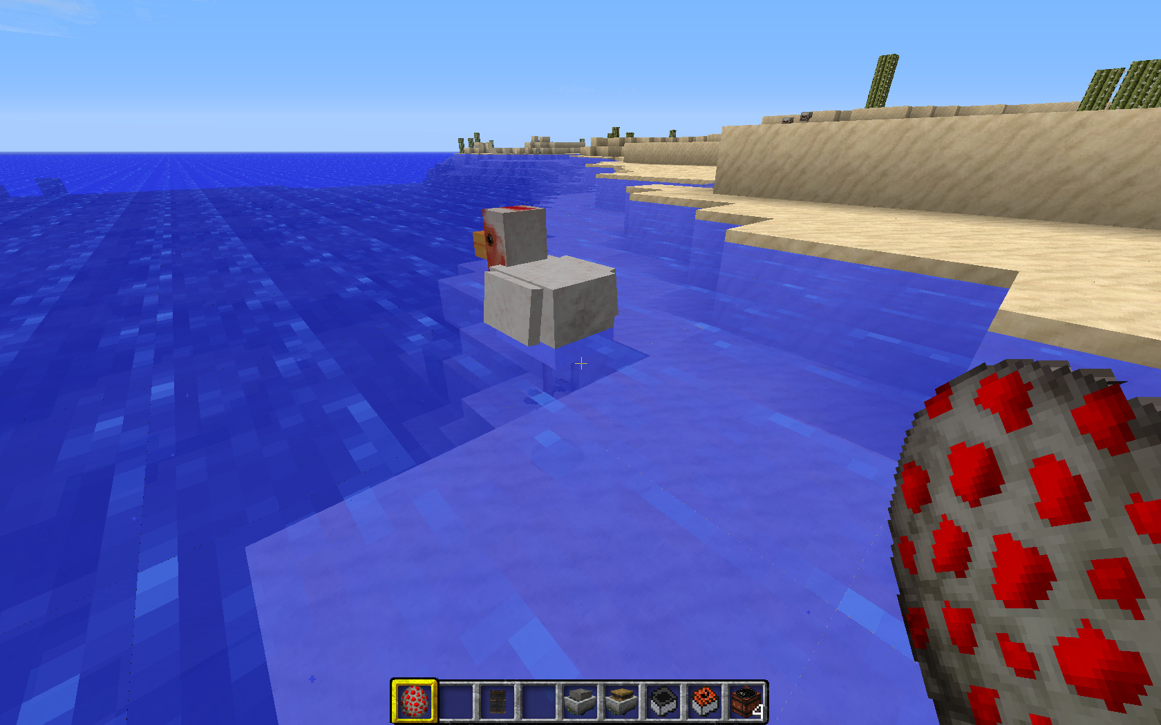 This isn't a horrid bug that destroys the game, I just didn't think it was supposed to happen. I trust you guys didn't add a feature that froze the chickens wings in place when their in water, did you? (If you threw together a way to make their wings freeze when their in water though, that'd be cool 😛)