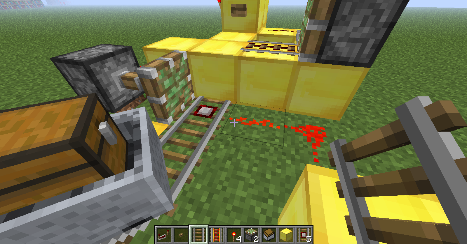 (Mind that there is a redstone torch beneath the powered rail that is connected to the detector rail)
