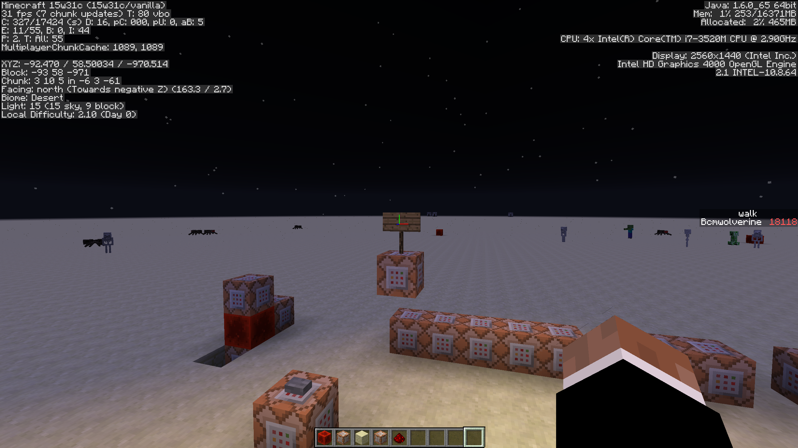 In Minecraft 1.8.8 can get 50-100 FPS while on 15w31c I can only get 10 - 20 while moving and 30 when still. I've tried lowering settings, restarting my computer, and closing background apps, nothing works.