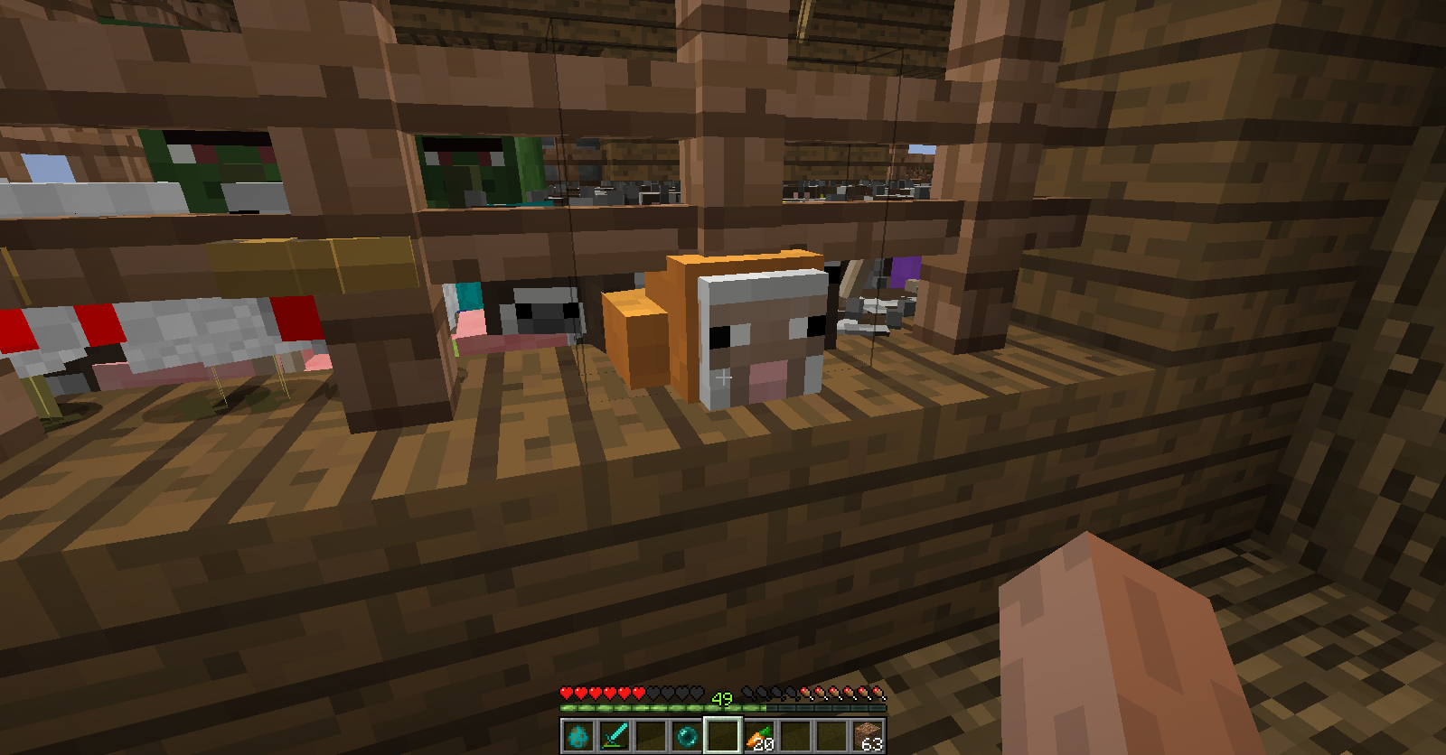 2. if you want, you can fill mobs untill it's enough for fill. (some of them can show their head or body slightly out trespassing the fence. I recommend use cows, sheep or pigs.)